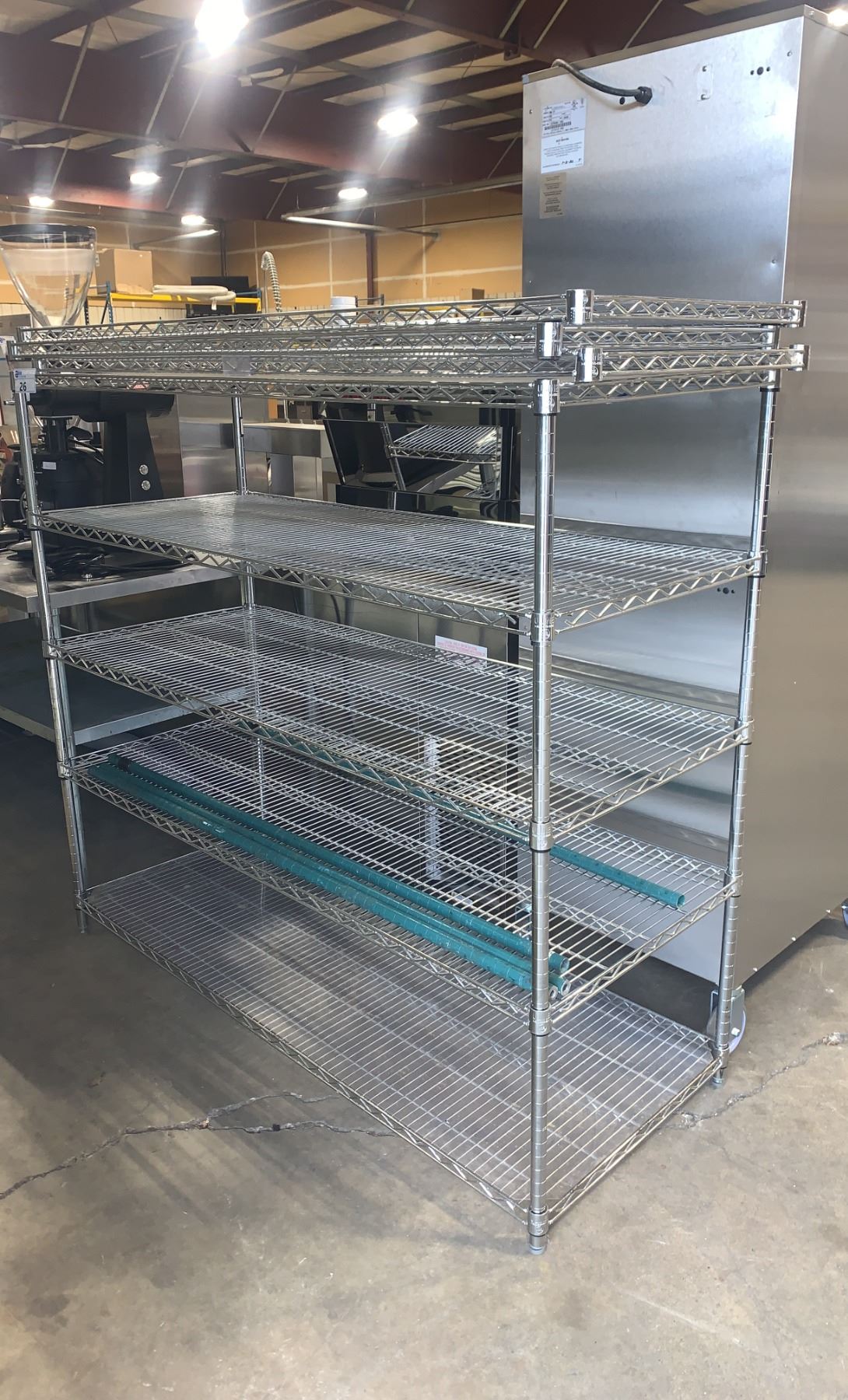 5 TIER CHROME FINISH METRO STYLE RACK WITH EXTRA PIECES - APPROX. 59"W X 24"D X 55"H