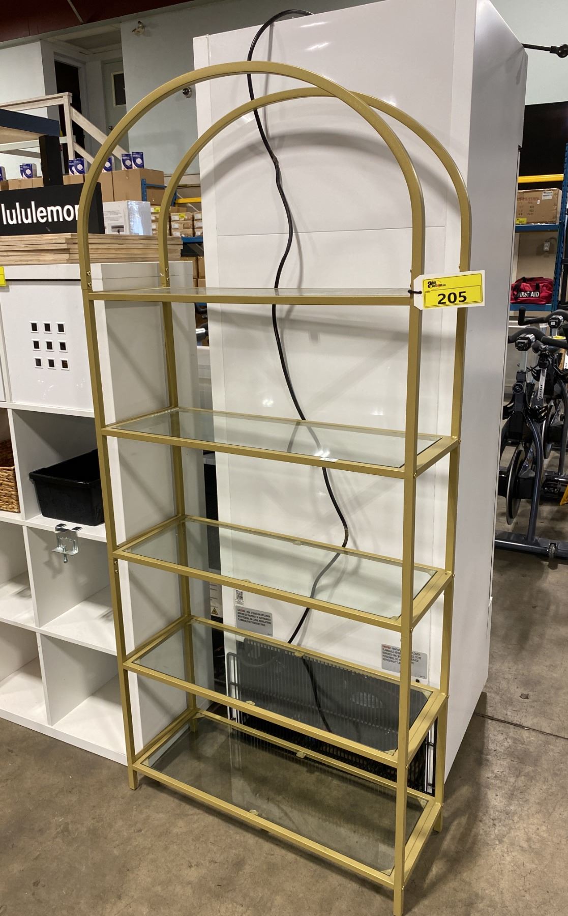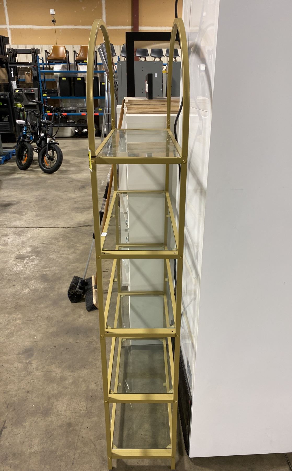 5 TIER GOLD/GLASS DISPLAY SHELVING UNIT 33"W X 12"D X 72"