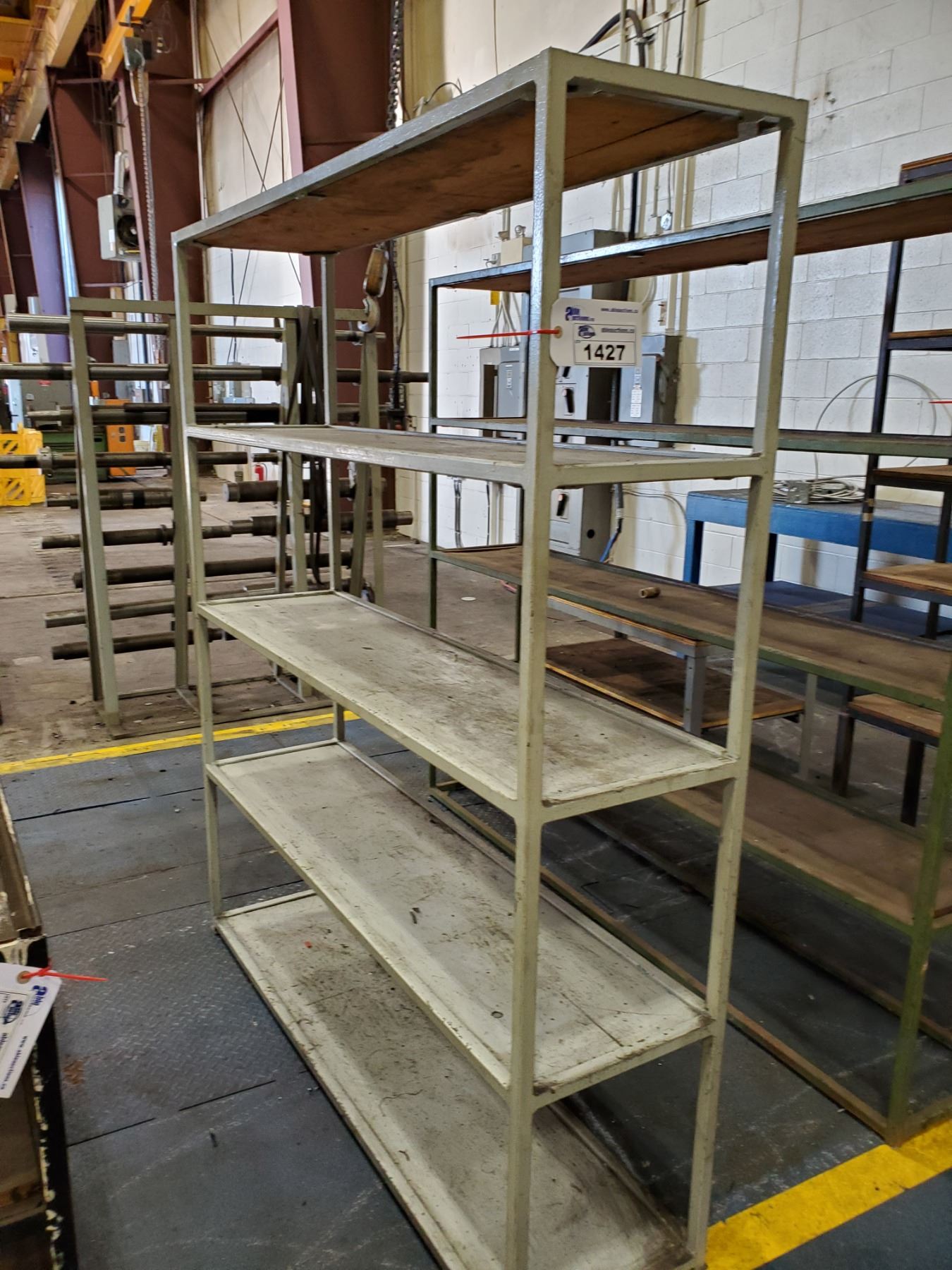 5 TIER GREY METAL AND WOOD SHELF UNIT 60"L X 16"W X 72"H