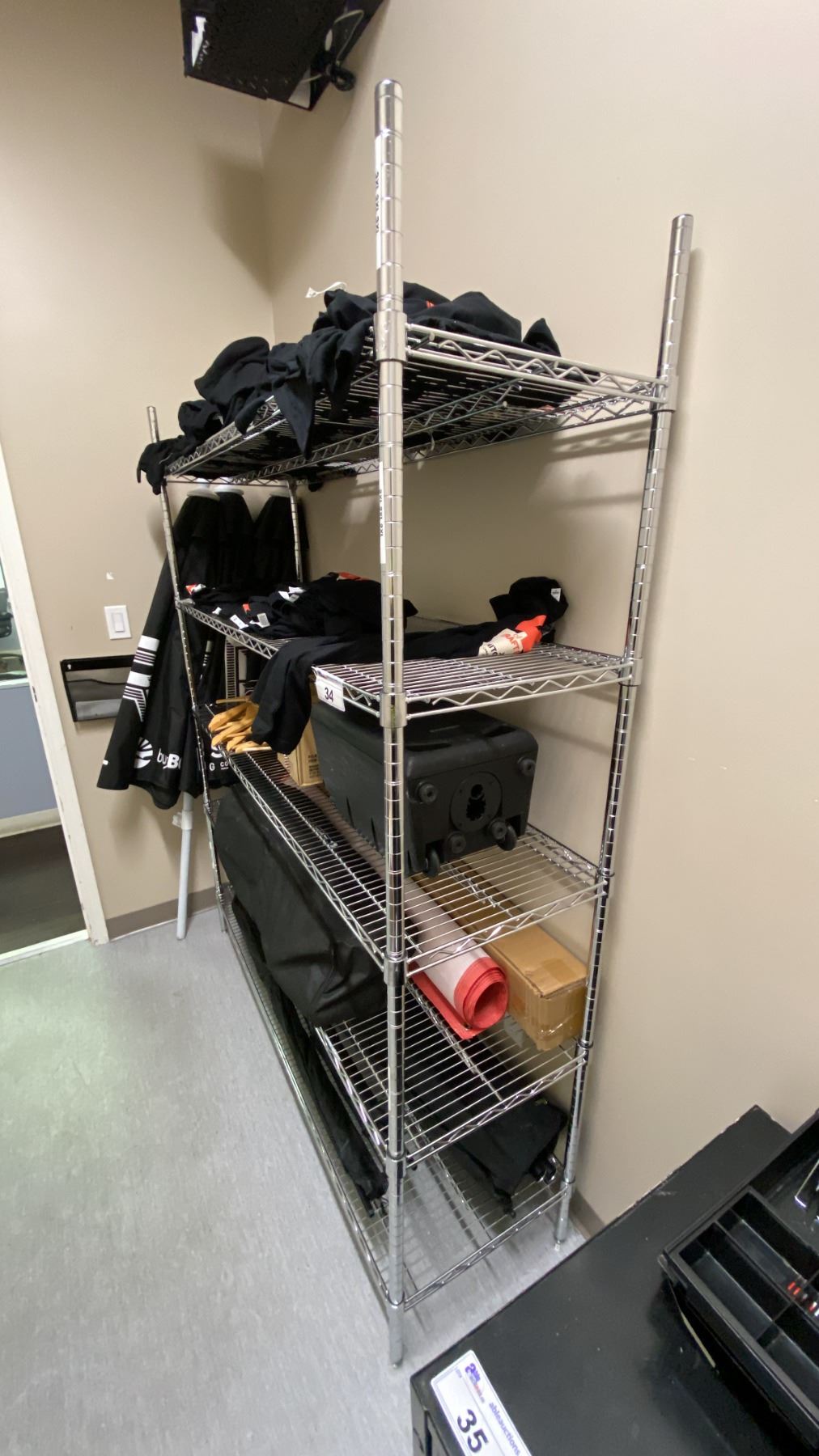 5 TIER METAL SHELF UNIT AND CONTENTS