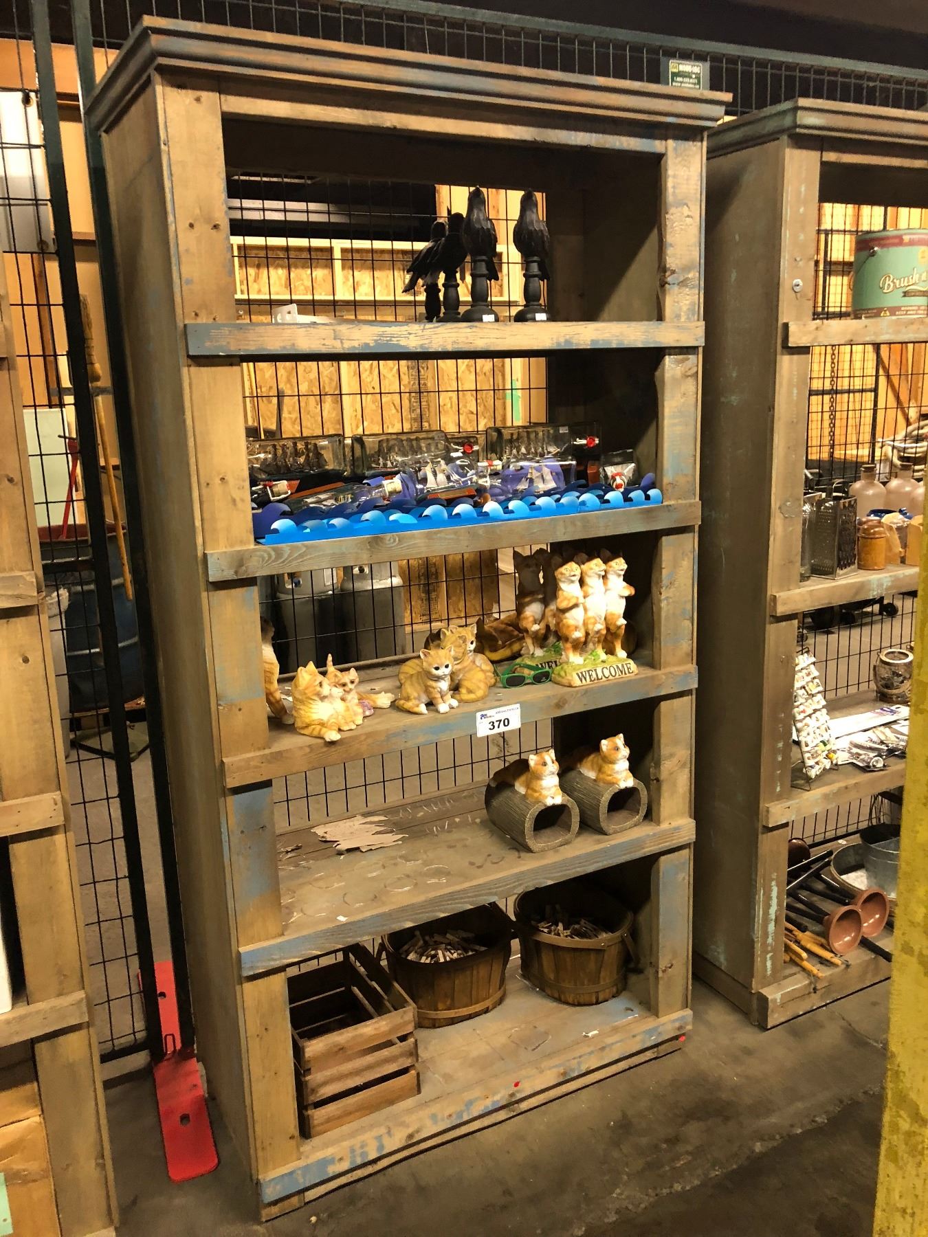 5 TIER WOODEN BOOKSHELF WITH ASSORTED GENERAL STORE ITEMS