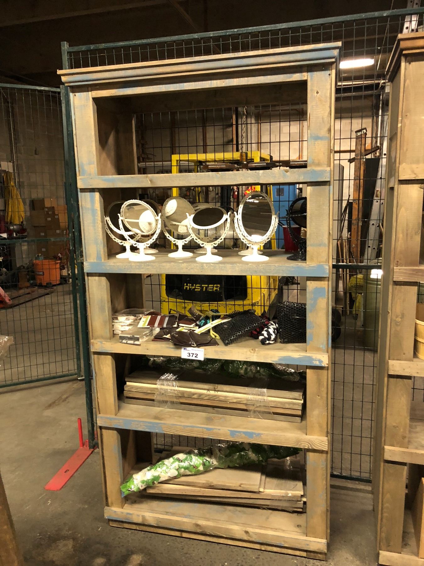 5 TIER WOODEN BOOKSHELF WITH ASSORTED GENERAL STORE ITEMS