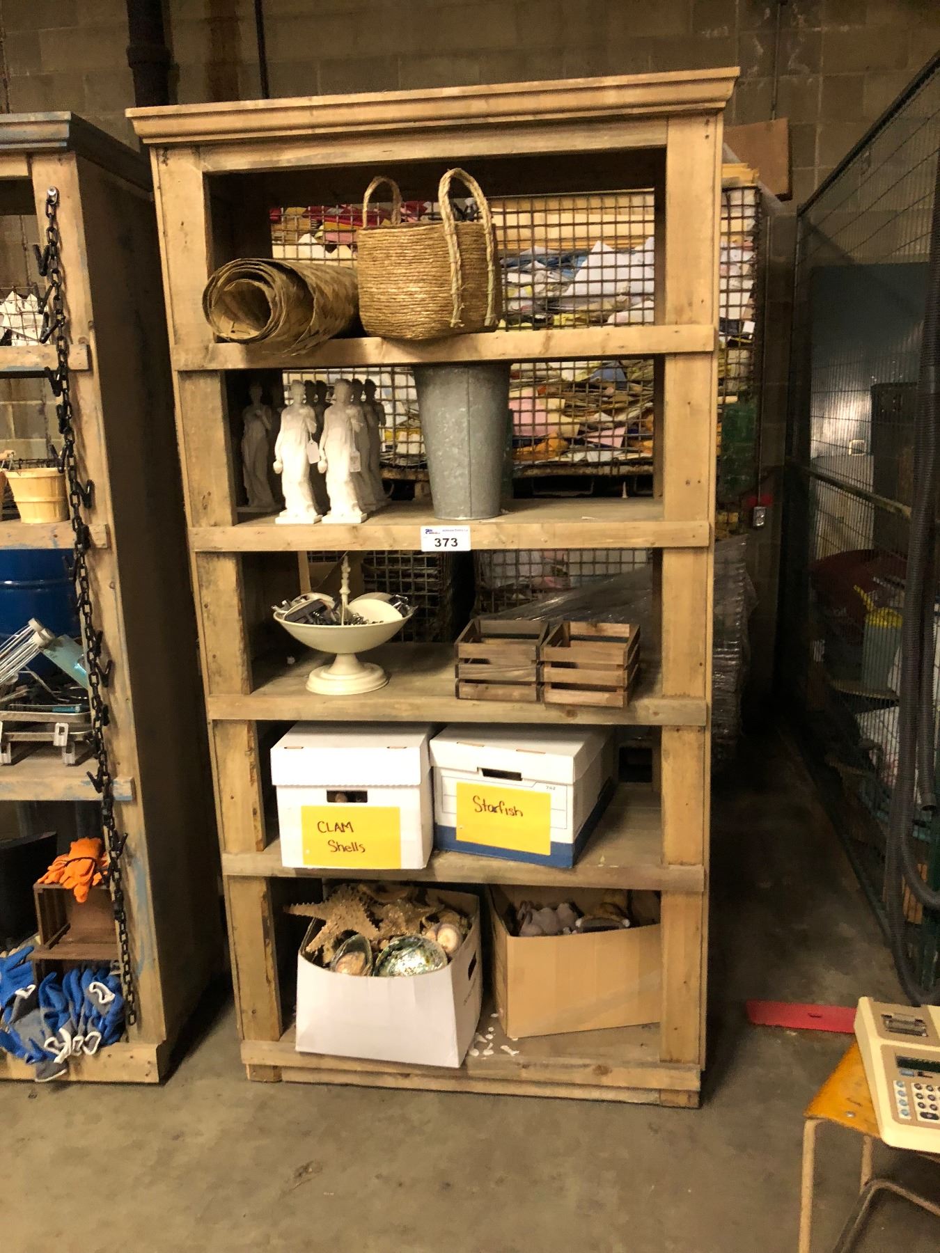 5 TIER WOODEN BOOKSHELF WITH ASSORTED GENERAL STORE ITEMS