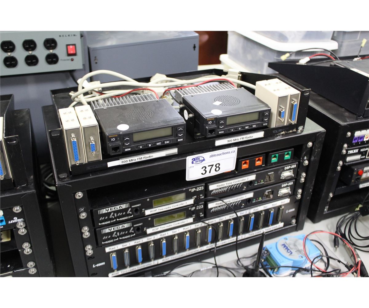 5 UNIT RACK OF RADIO, NETWORK, TELEPHONE AND OTHER COMMUNICATION EQUIP INC. 800/900 MHZ FM RADIOS, S