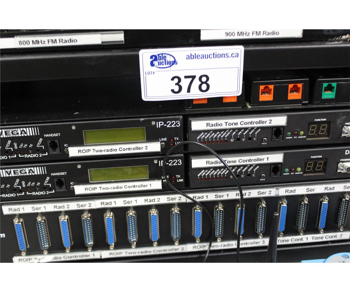 5 UNIT RACK OF RADIO, NETWORK, TELEPHONE AND OTHER COMMUNICATION EQUIPMENT INC. 800/900 MHZ FM RADIOS, SWITCHES, RADIO CONTROLLERS AND MORE