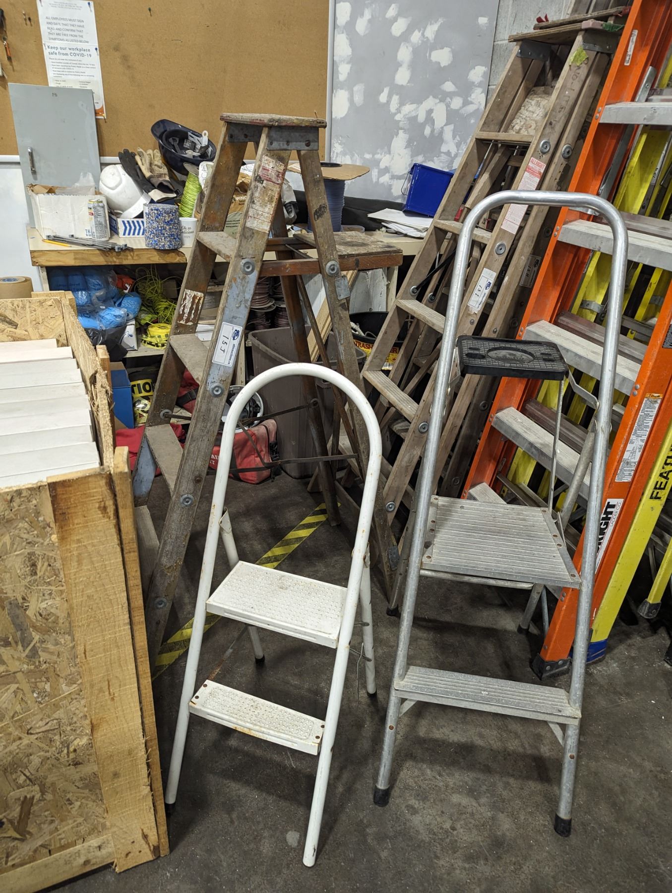 5' WOOD STEP LADDER AND 2 SMALLER STEP LADDERS