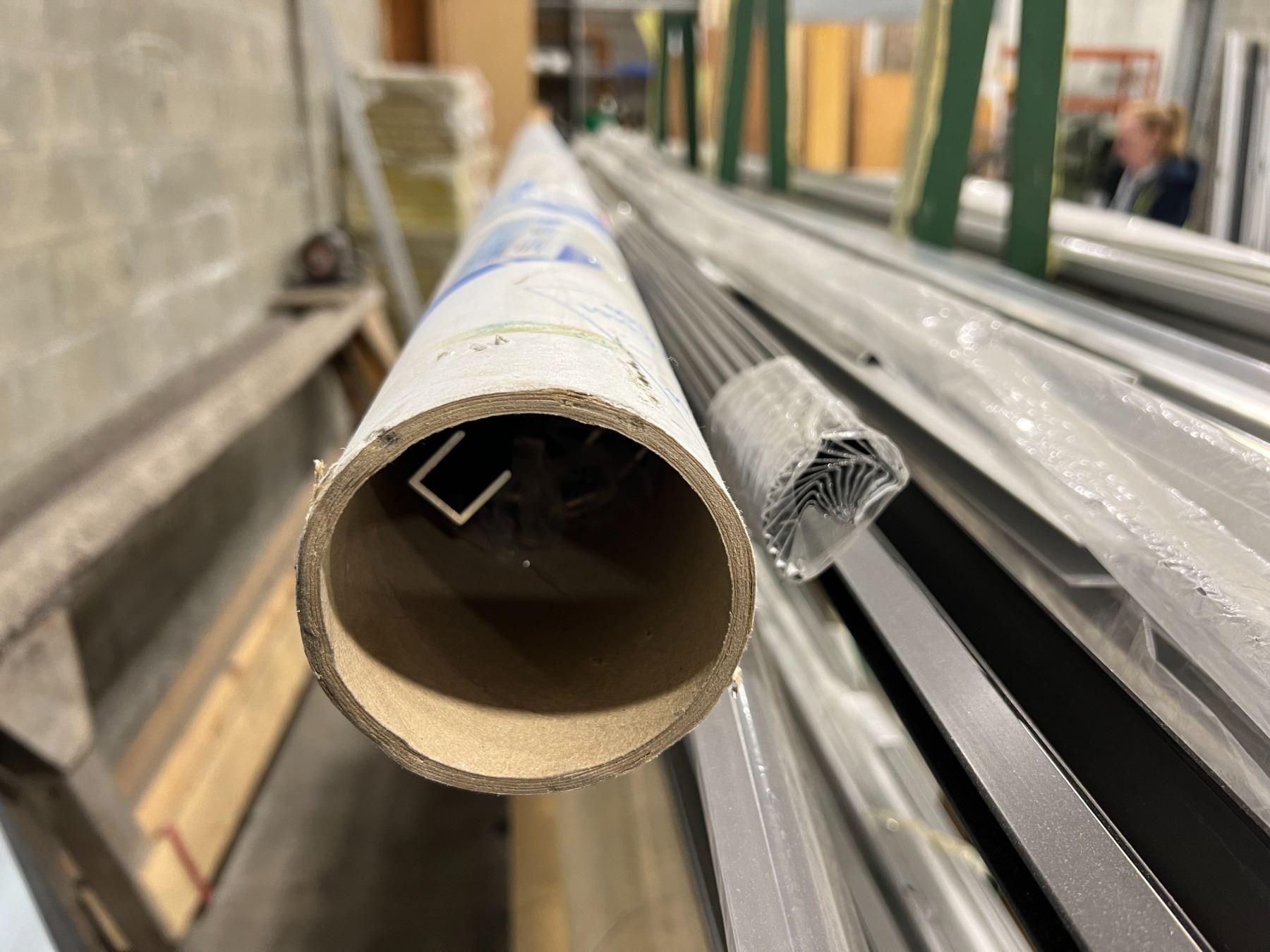 5'X3'X6' ROLLING A-FRAME CART WITH CONTENTS. OVER 100 PIECES ASST ALUMINUM MOLDINGS