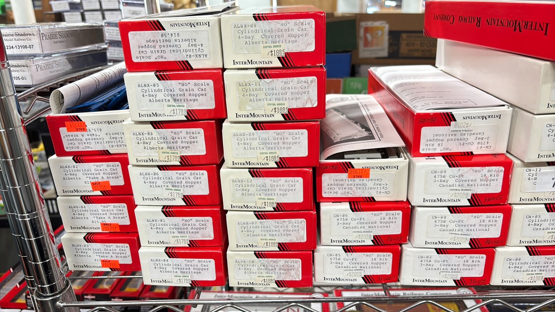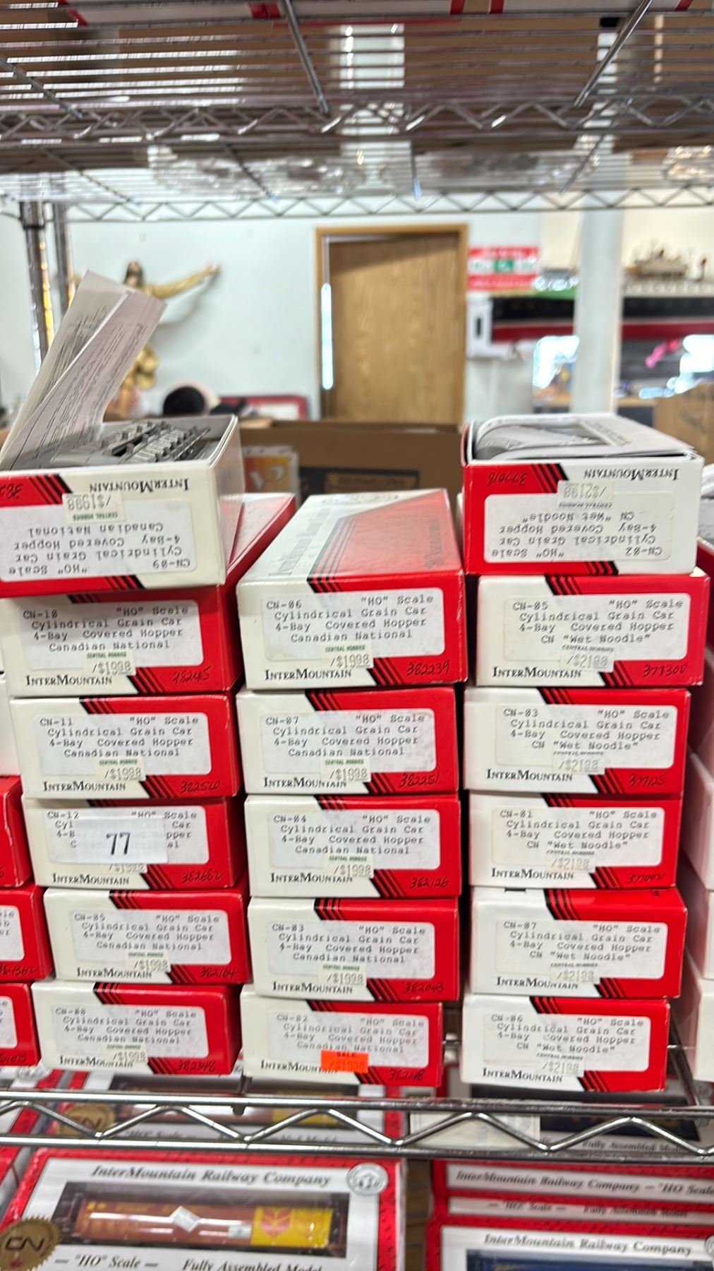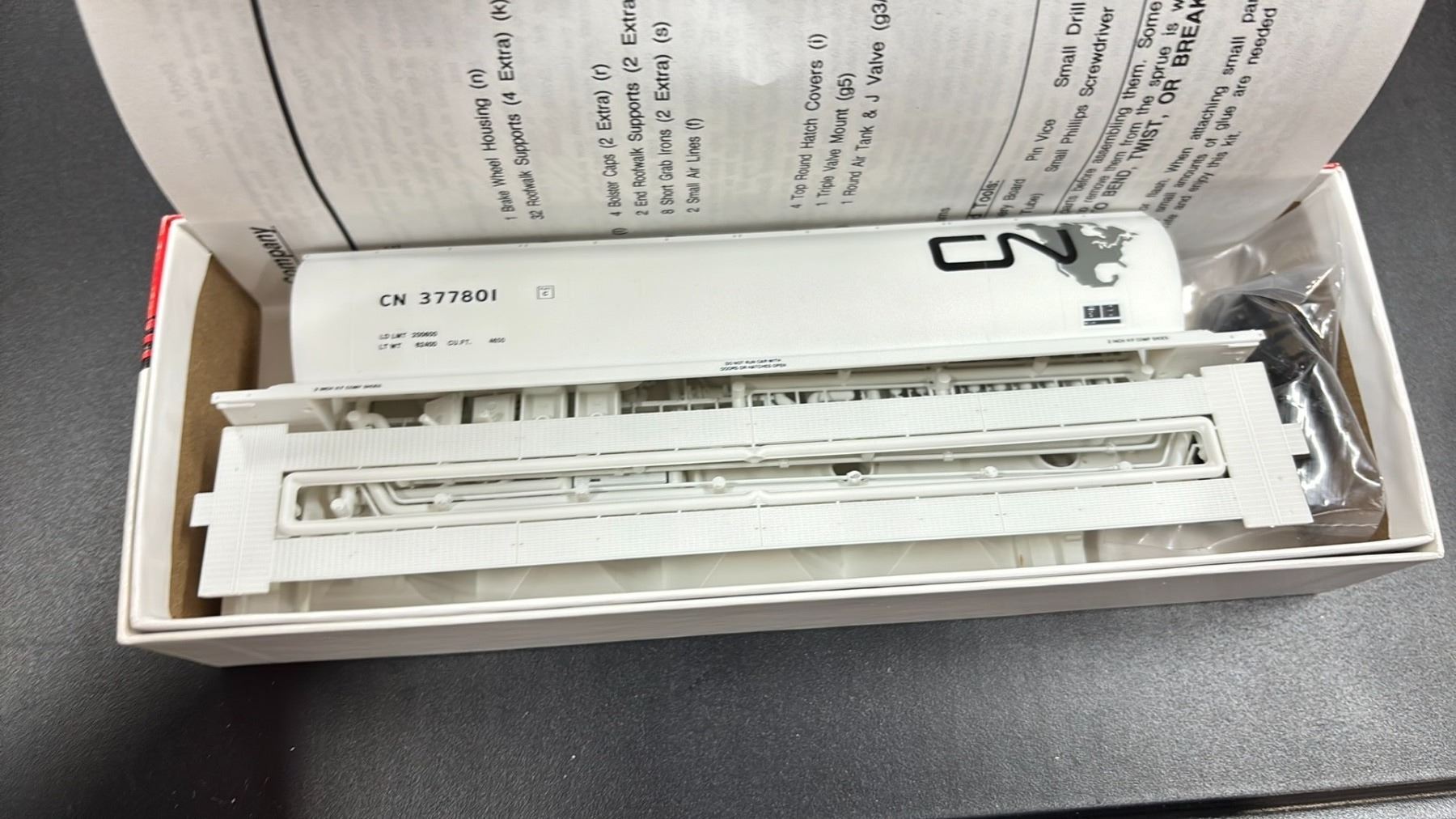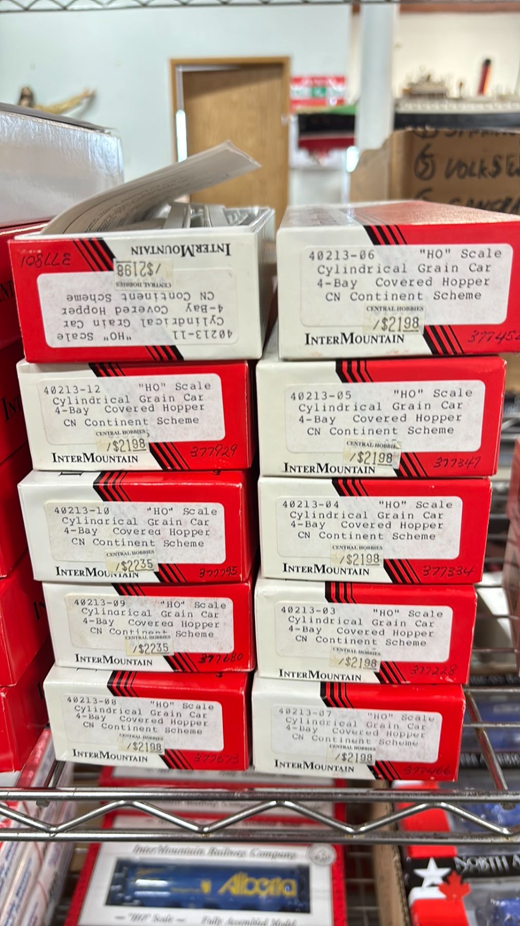 (50) ASSORTED INTERMOUNTAIN RAILWAY COMPANY HO SCALE PLASTIC MODEL KITS INCLUDING; CYLINDRICAL GRAIN CAR 4-BAY COVERED HOPPER ALBERTA HERITAGE, 18 RIB 3-BAY COVERED HOPPER CANADIAN NATIONAL, CYLINDRICAL GRAIN CAR 4-BAY COVERED HOPPER CN "WET NOODLE" & MORE