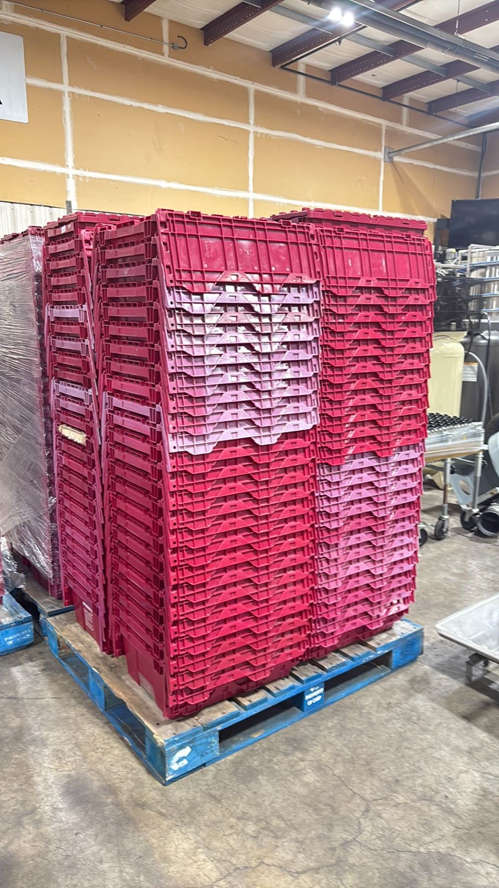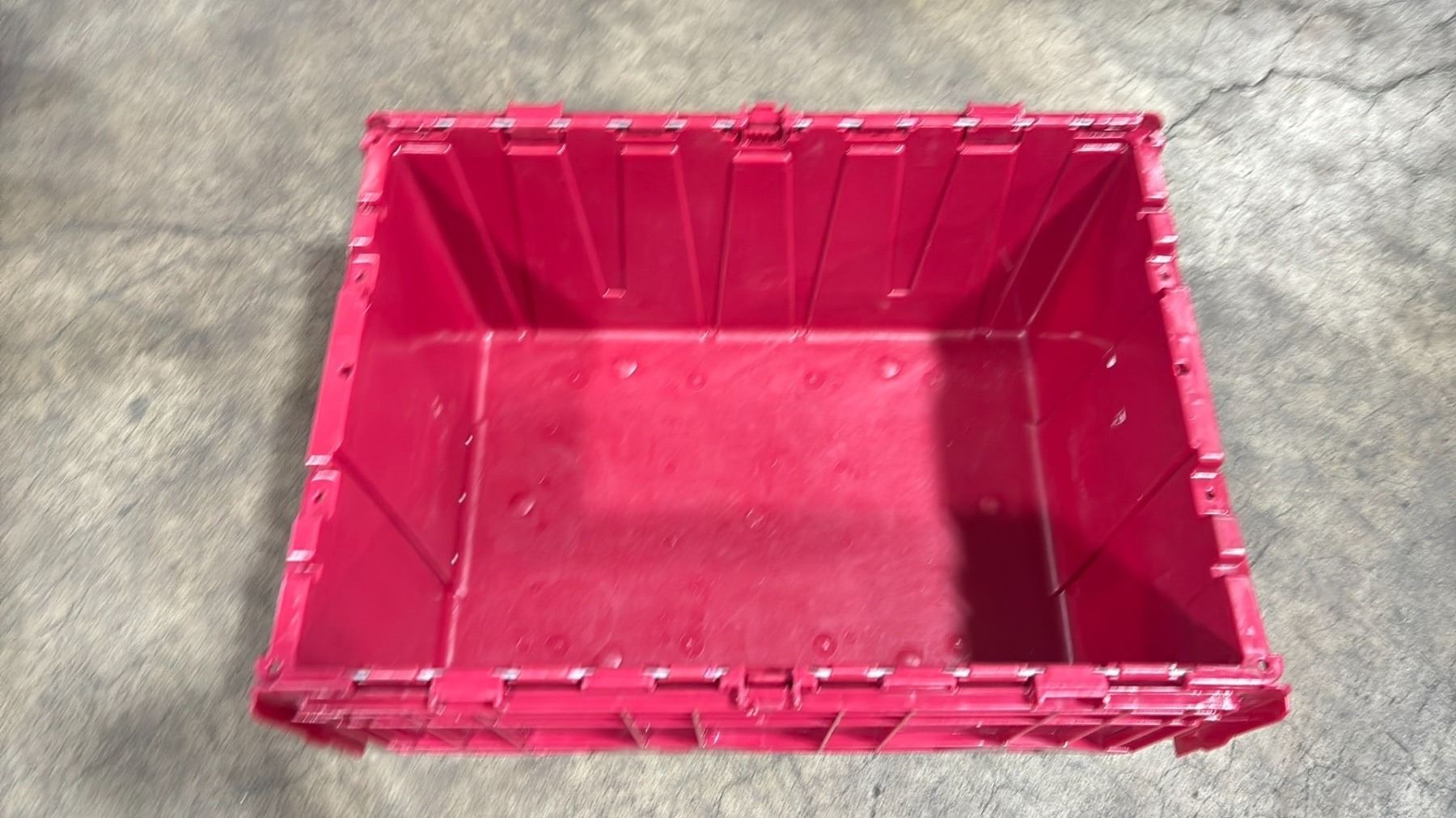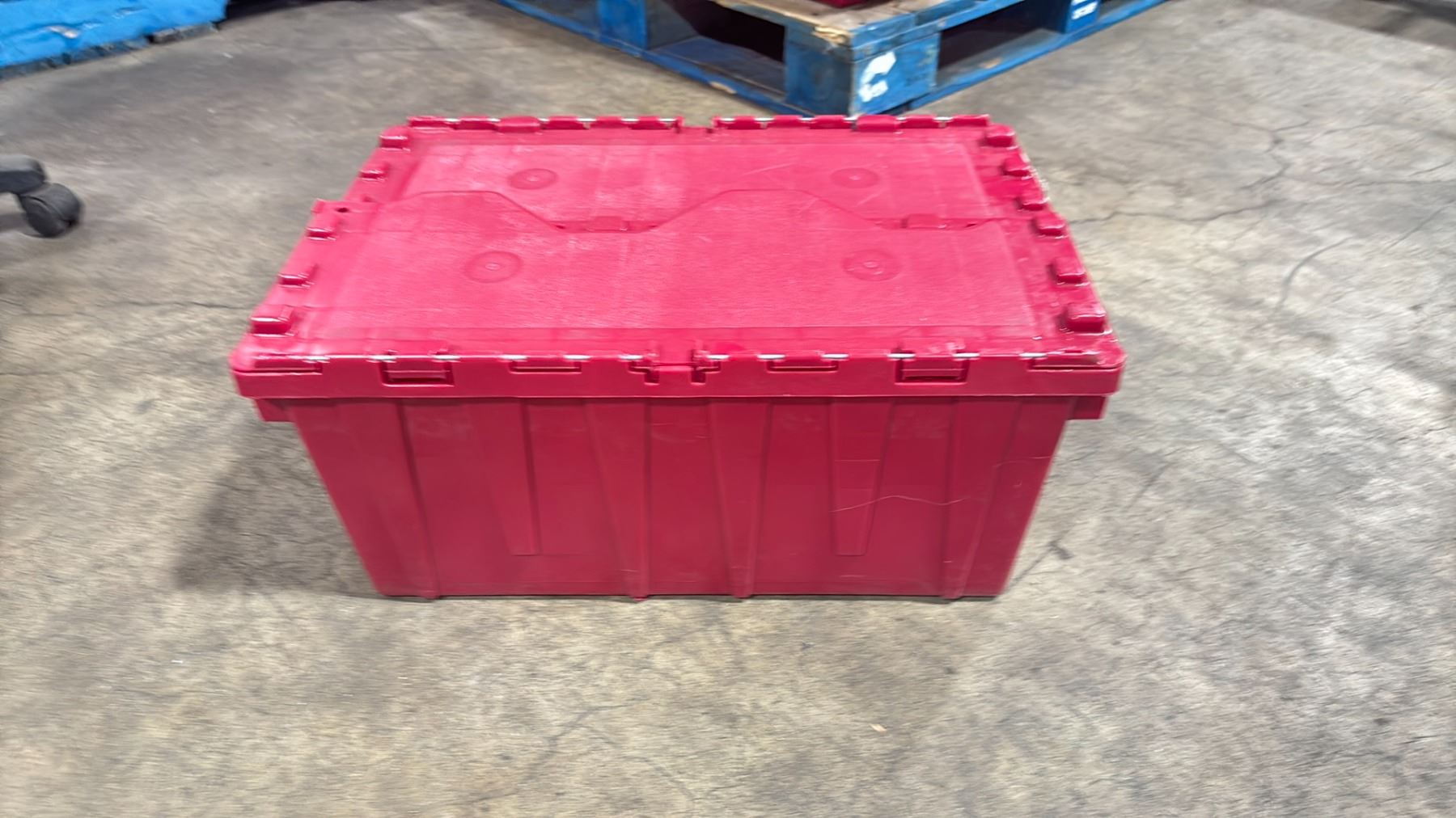 50 COMMERCIAL STACKING RED HINGED LID STORAGE TOTES