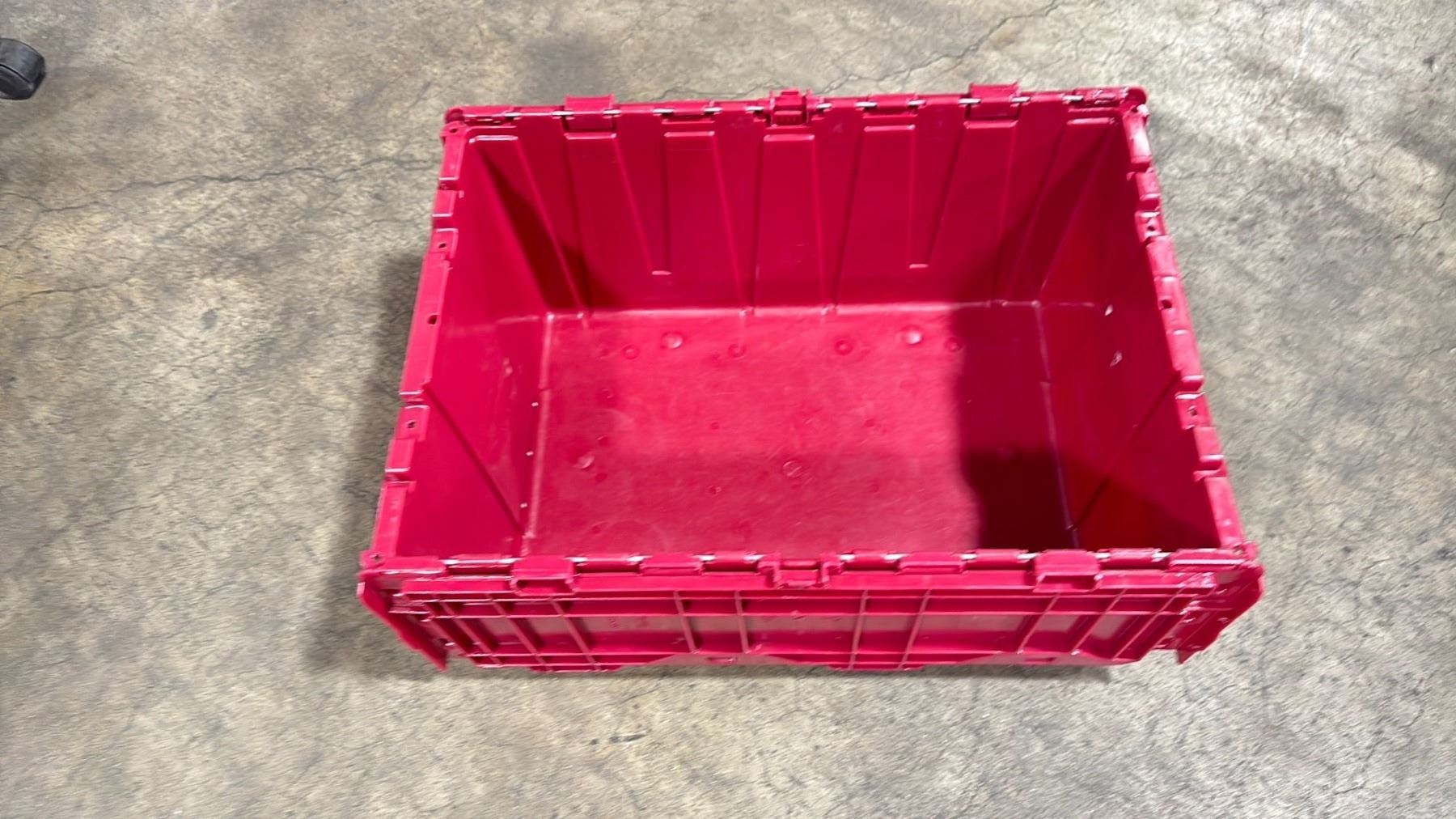 50 COMMERCIAL STACKING RED HINGED LID STORAGE TOTES