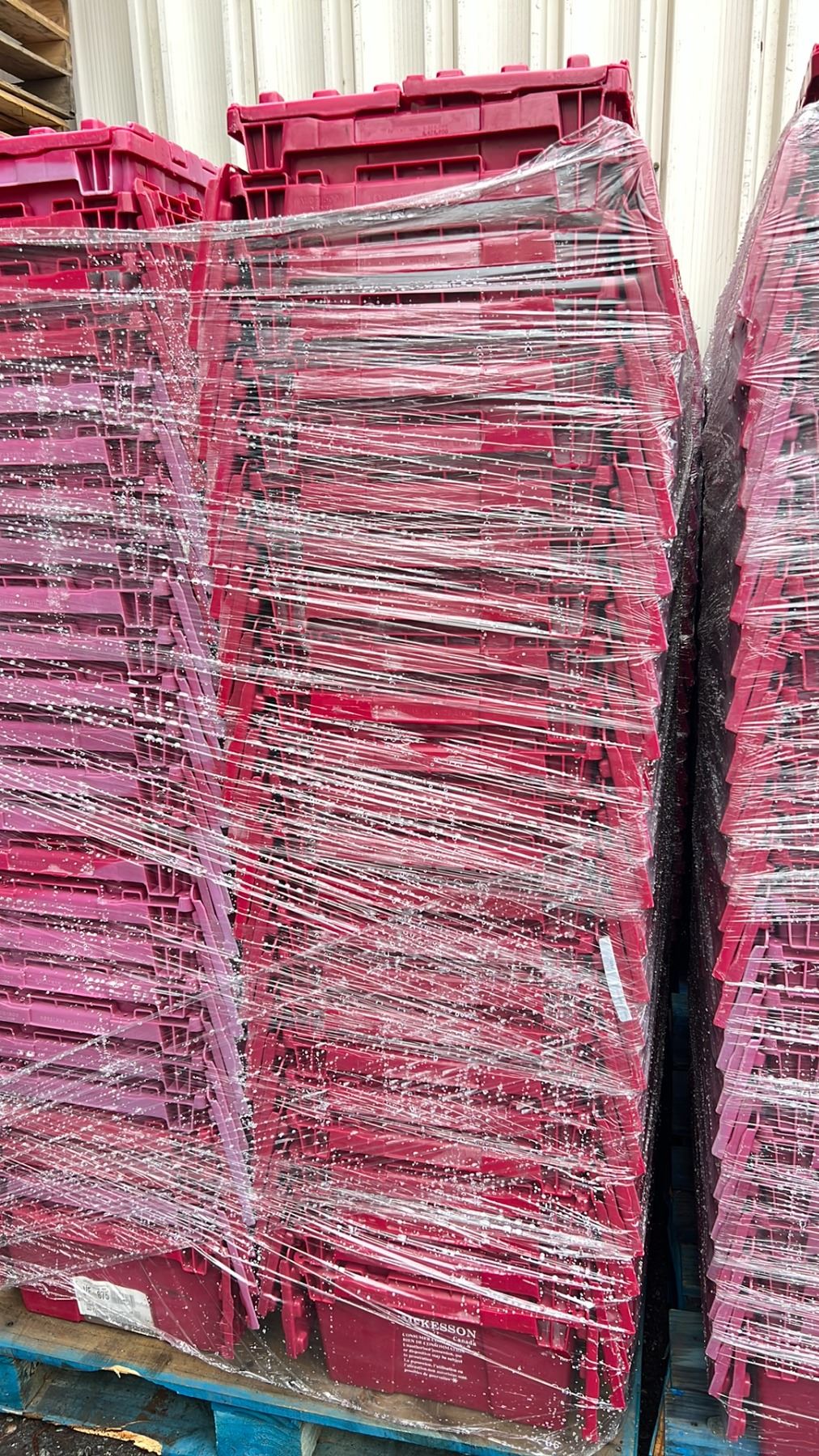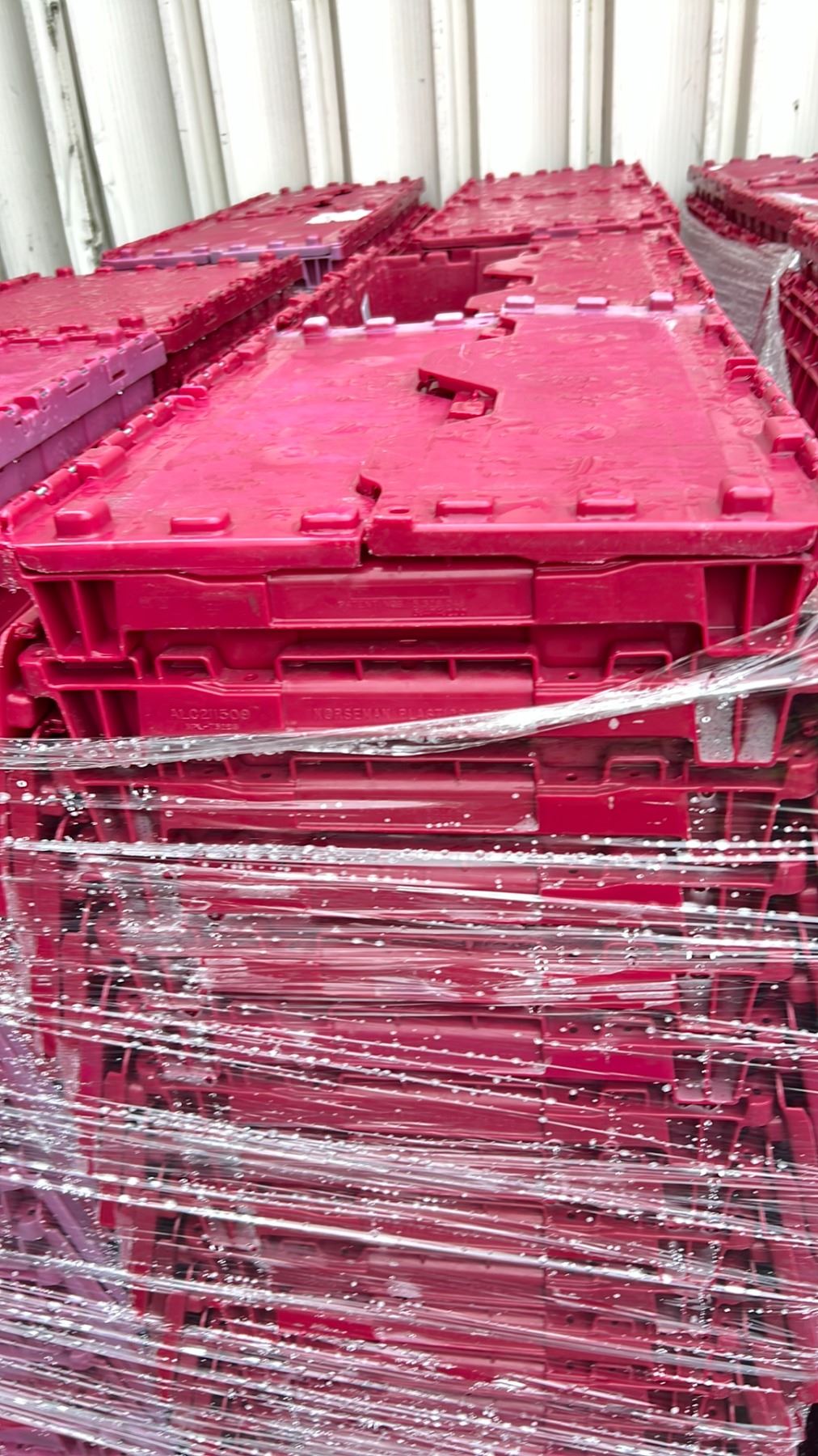 50 COMMERCIAL STACKING RED HINGED LID STORAGE TOTES