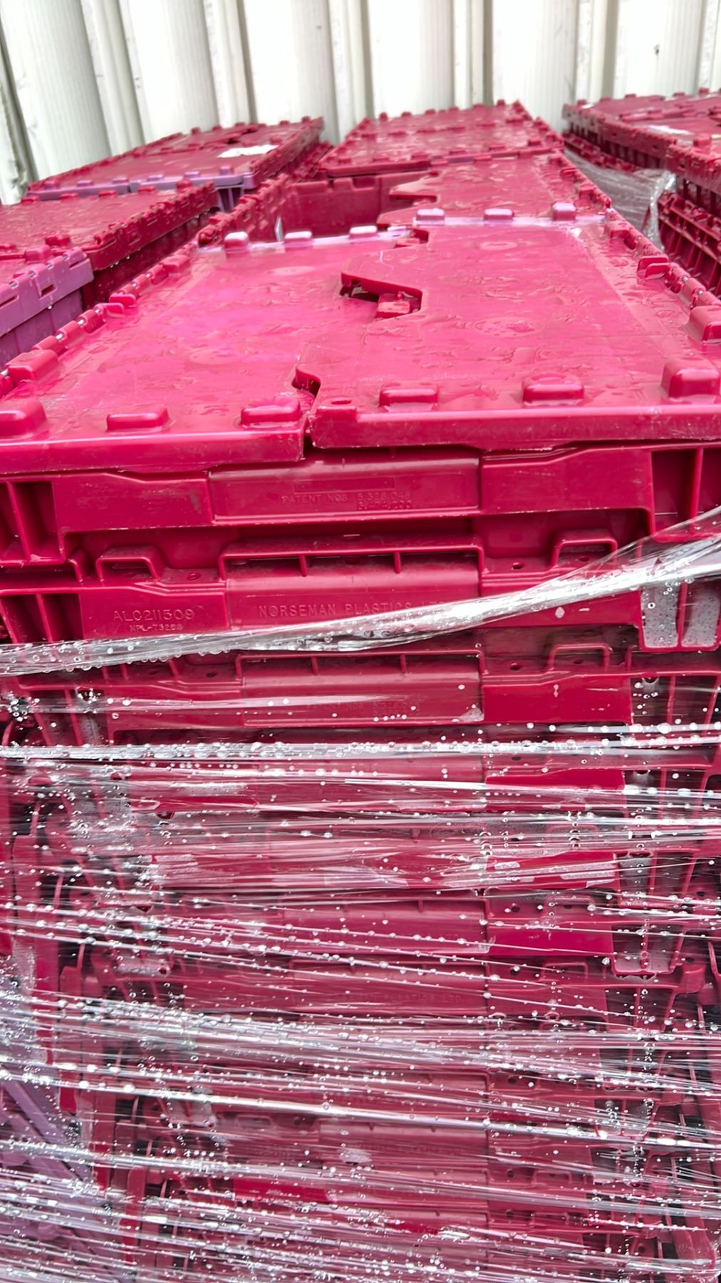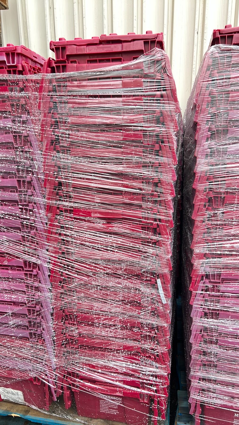 50 COMMERCIAL STACKING RED HINGED LID STORAGE TOTES