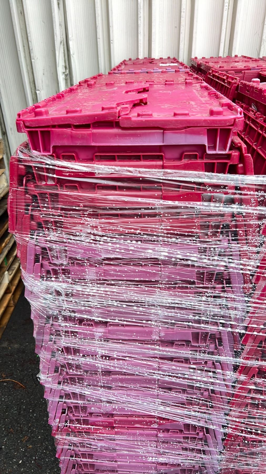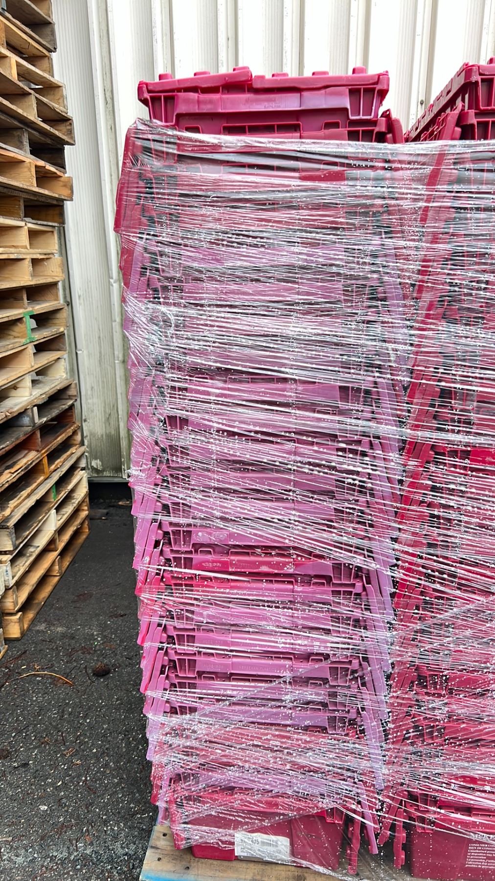 50 COMMERCIAL STACKING RED HINGED LID STORAGE TOTES
