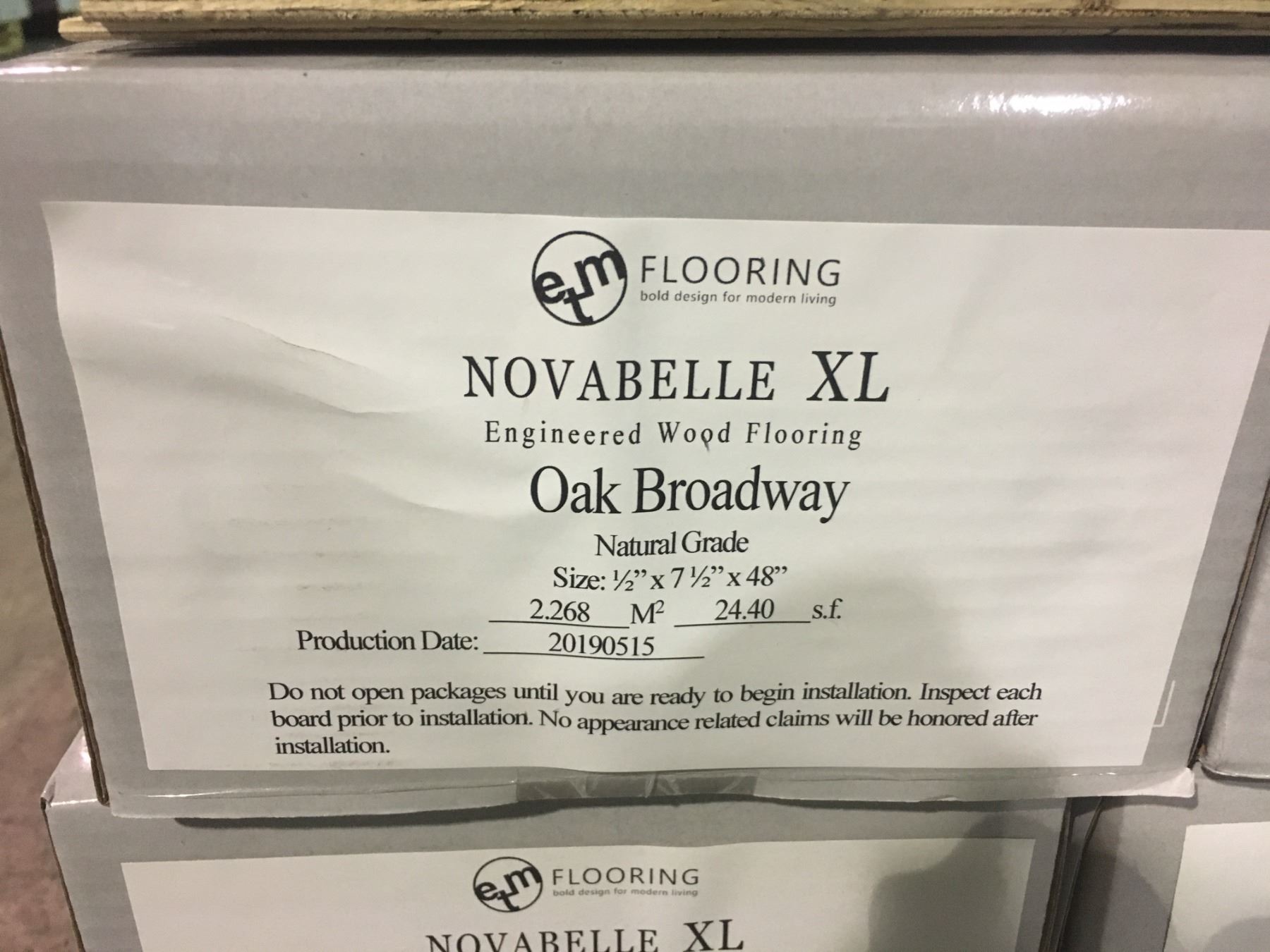 536.8 SQ FT OF ETM NOVABELLE XL BRUSHED BROADWAY OAK ENGINEERED REAL WOOD FLOORING 24.40 SQ FT PER BOX 22 BOXES 536.8 SQ FT TOTAL *MUST TAKE ALL ON PALLET*