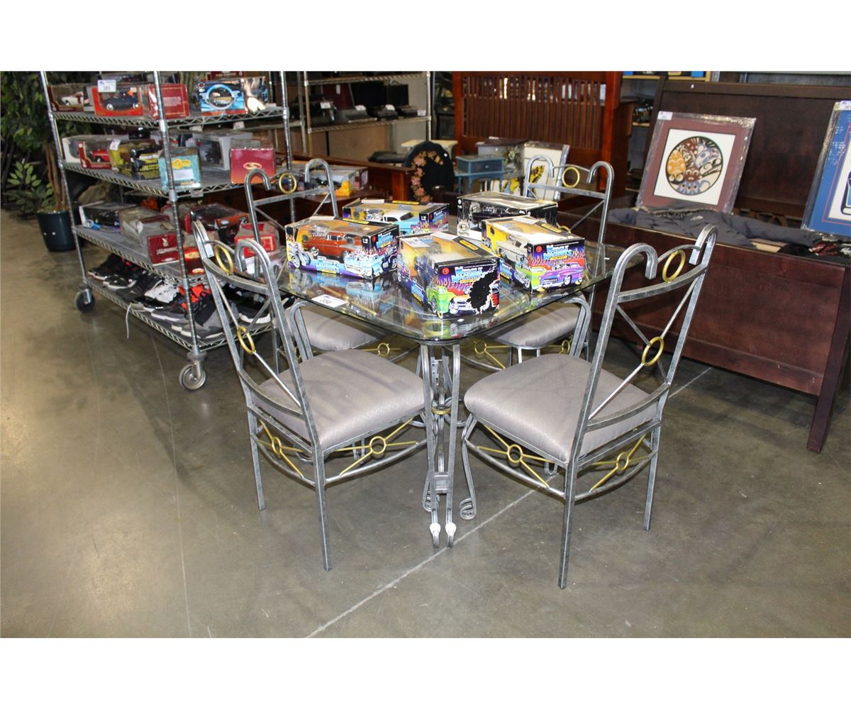 5PC DINETTE X AND O TABLE SET; GLASS TOP TABLE WITH 4 CHAIRS