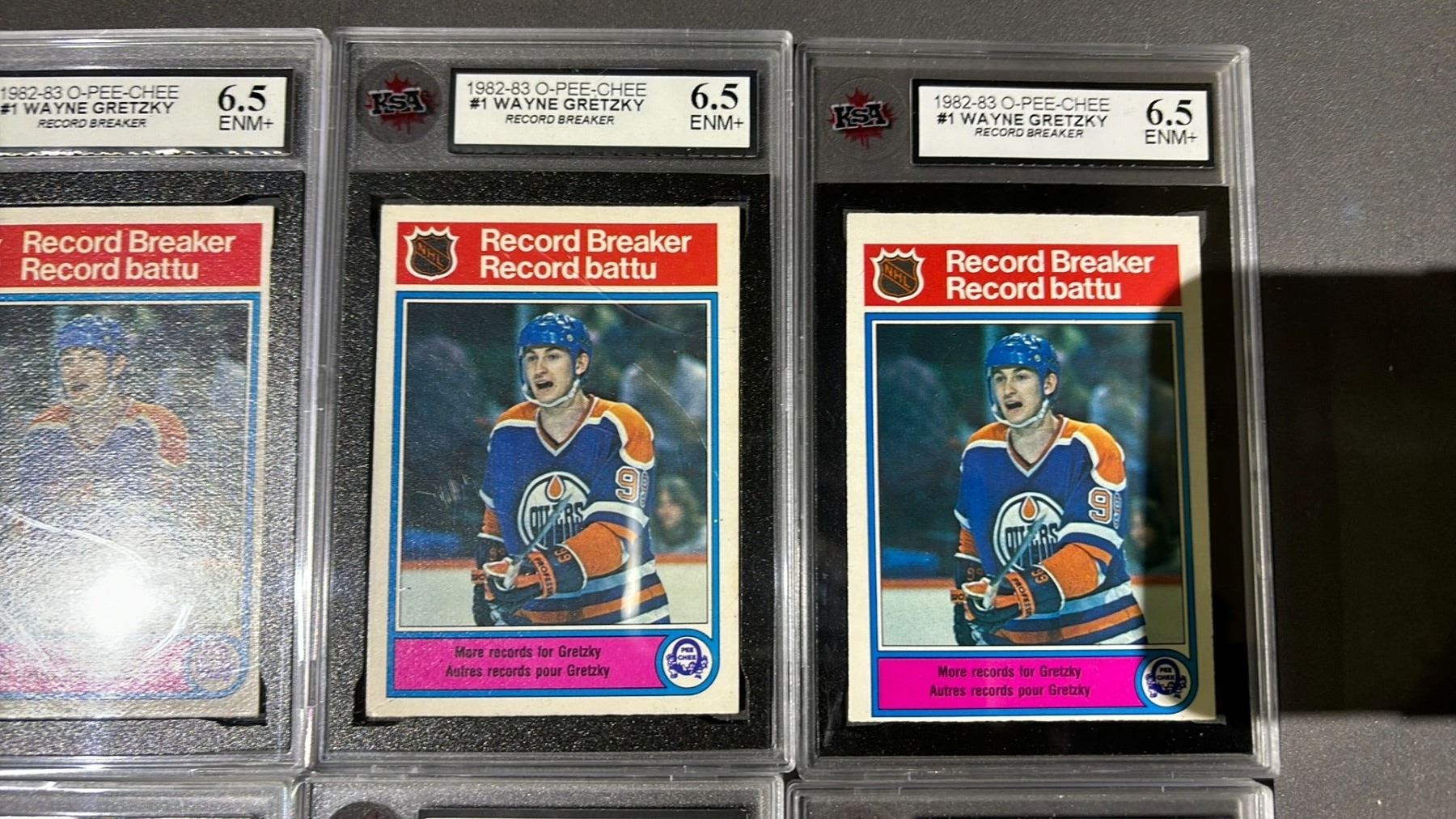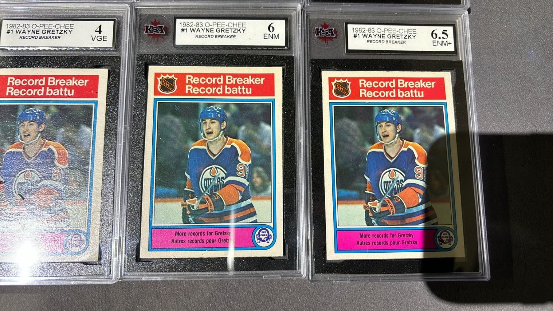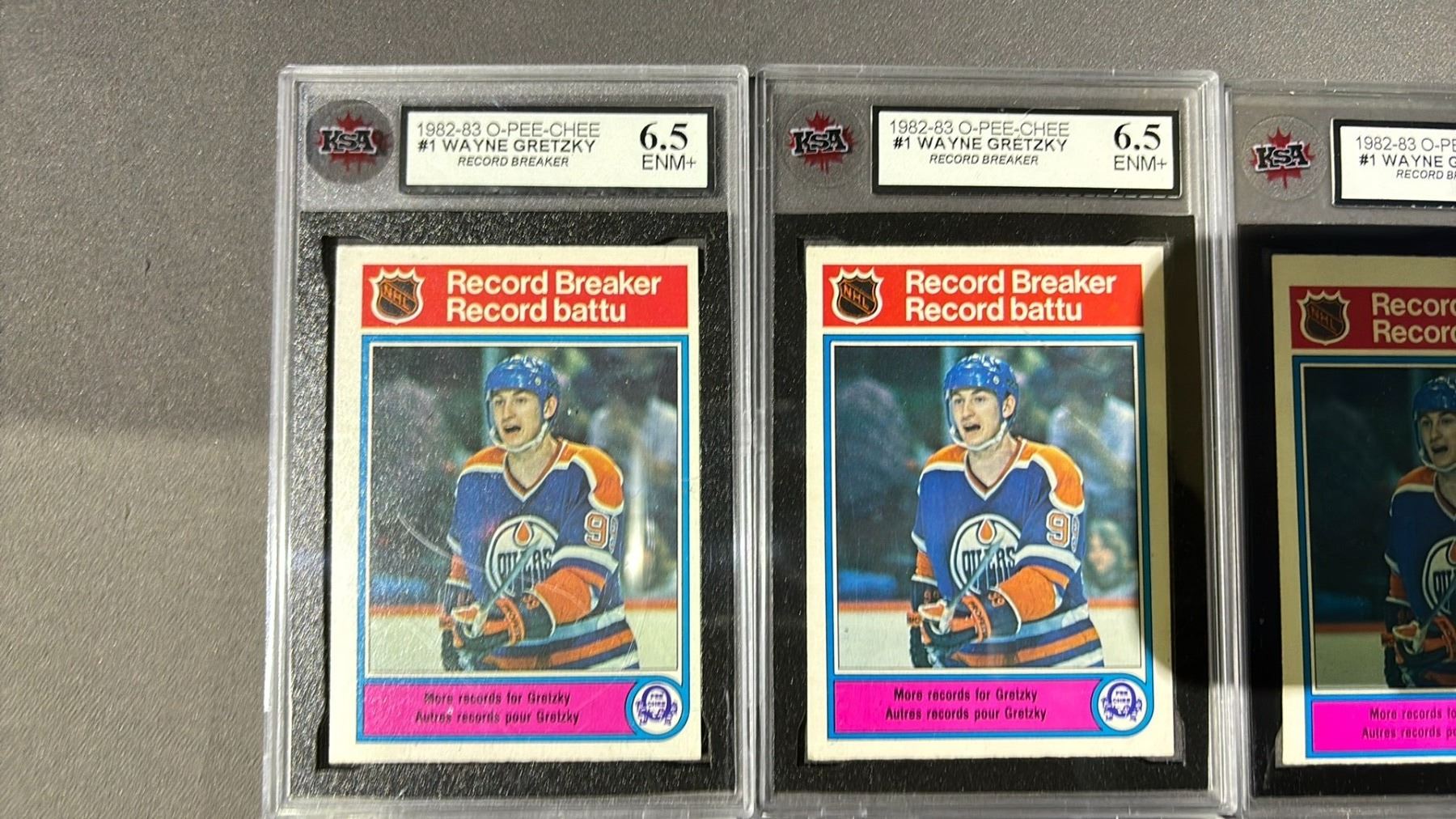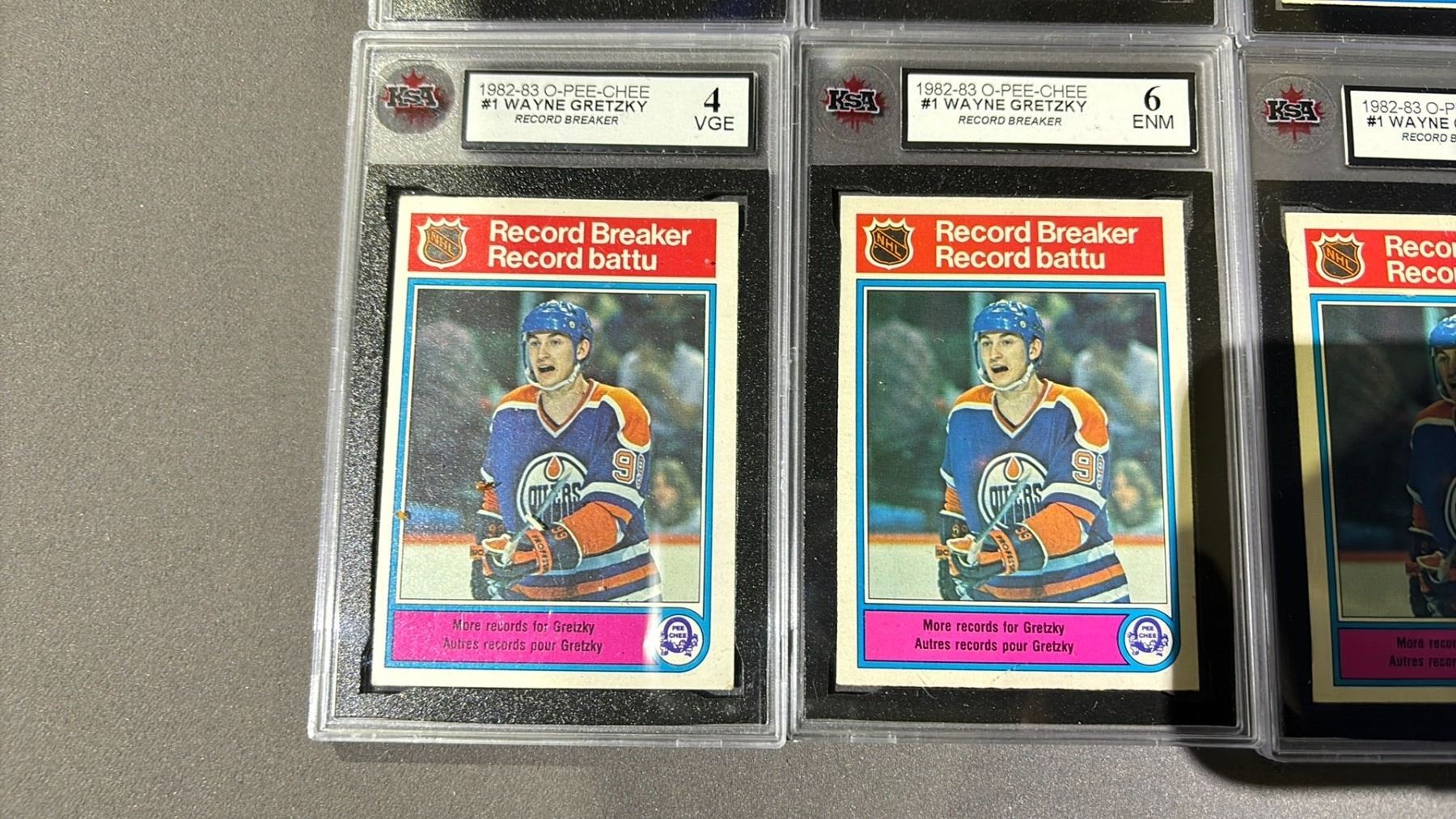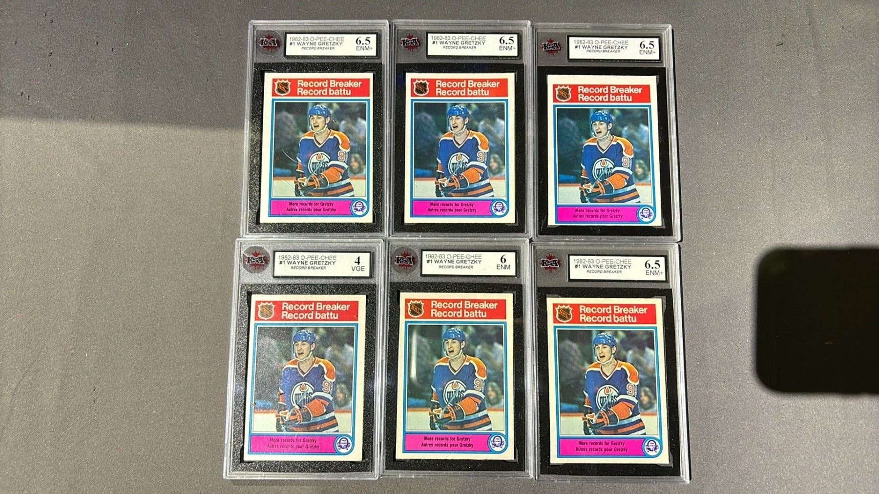 6 1982-1983 O-PEE-CHEE WAYNE GRETZKY RECORD BREAKERS #1, ASSORTED KSA GRADES