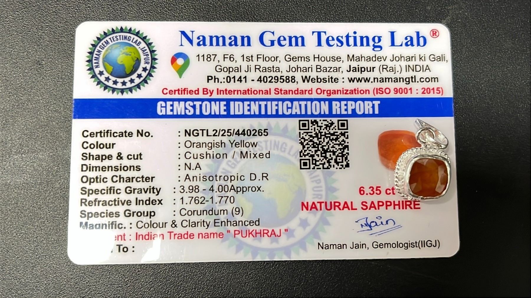 6.35CT NATURAL YELLOW SAPPHIRE S925 SILVER PENDANT LISTED RETAIL $4800