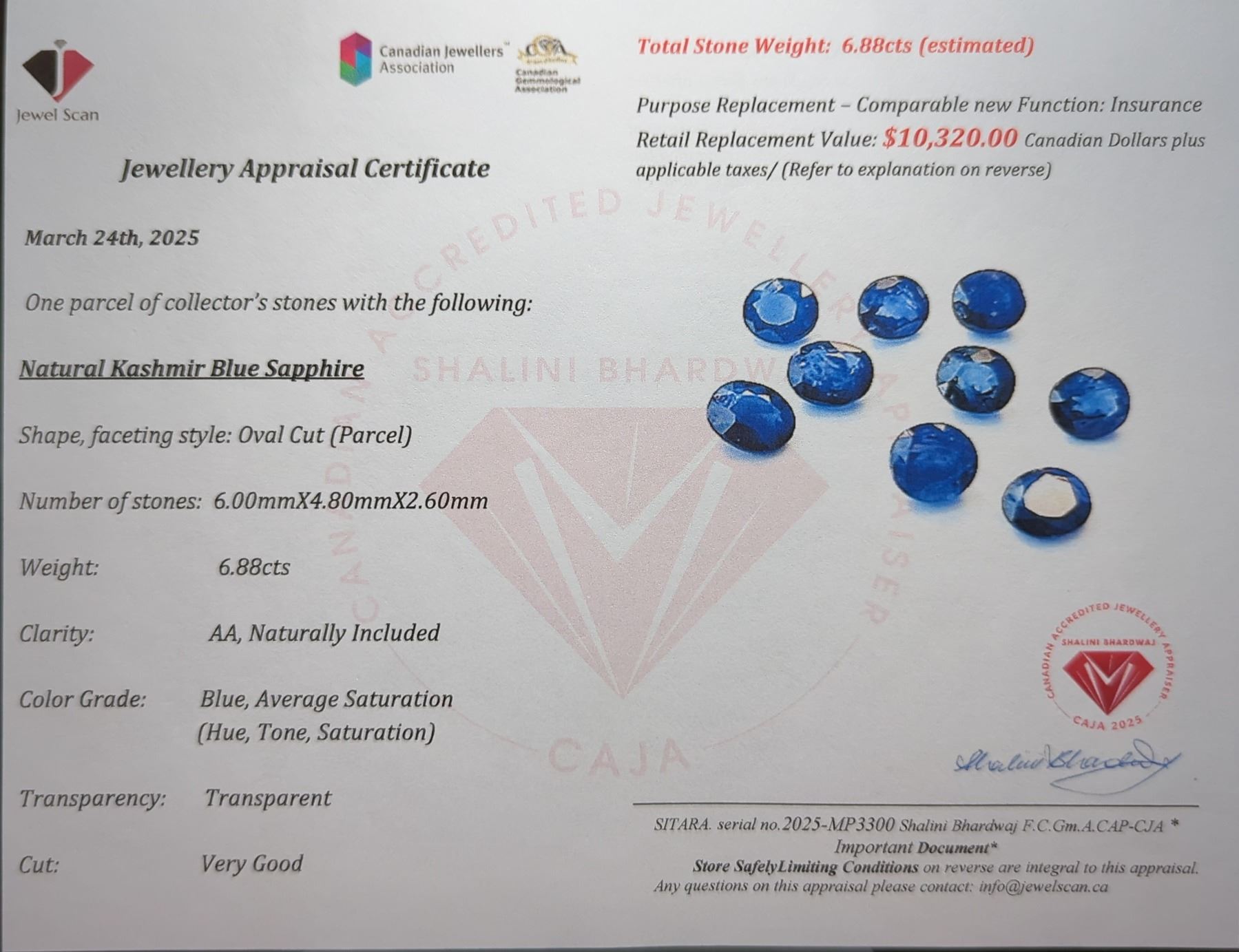 6.88 CT CERTIFIED CEYLON BLUE SAPPHIRE GEMSTONE PARCEL ($10,320 APPRAISAL) - **APPRAISAL NOT GUARANTEED**