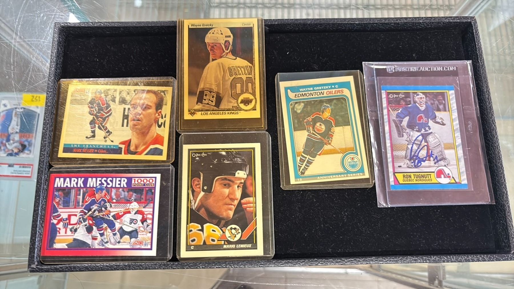 (6) ASSORTED HOCKEY CARDS INCLUDING; WAYNE GRETZKY, MARK MESSIER, RON TUGNUTT (AUTOGRAPHED) & MORE