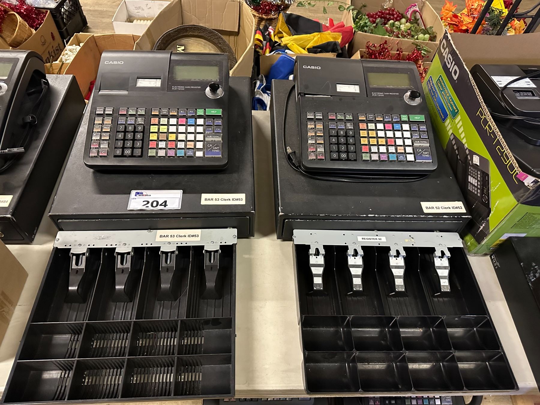 6 ASSORTED REGISTER SYSTEMS WITH CASH DRAWERS AND BOX OF RECEIPT PAPER (SOME WITH KEYS SOME WITHOUT KEYS)