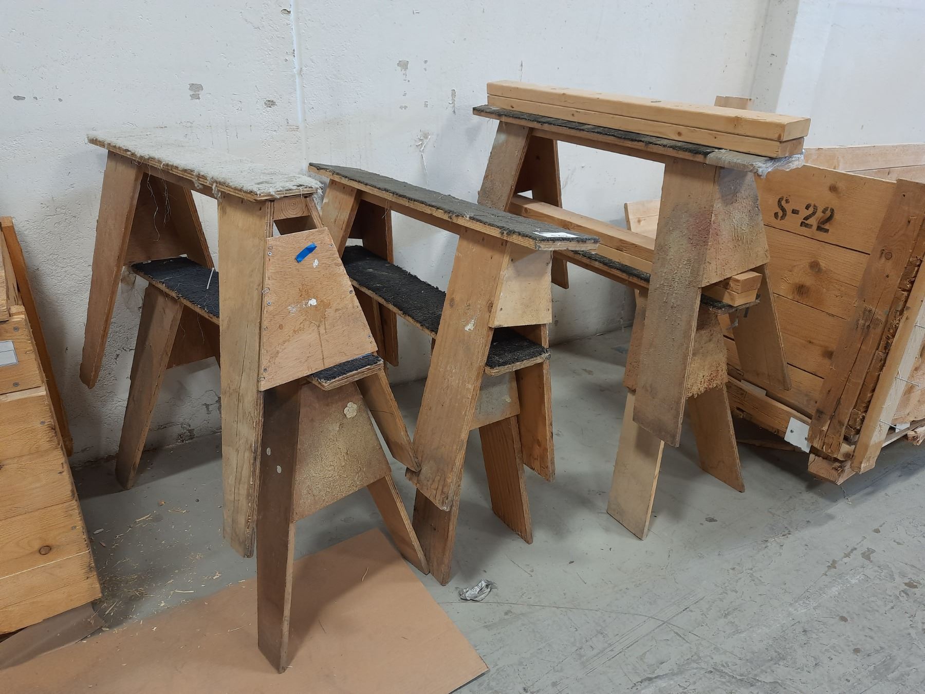 6 ASSORTED WOOD/CARPET PORTABLE SAW HORSES