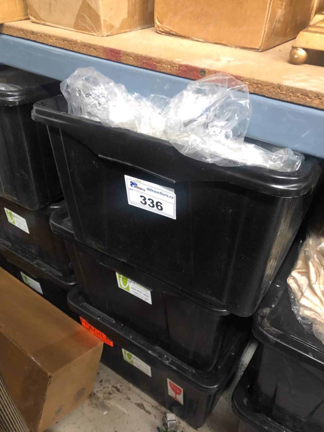 6 BINS OF ASSORTED LINENS, SHAPE/SIZE VARY BETWEEN BINS, COLOURS/PATTERNS INC. WHITE AND MORE