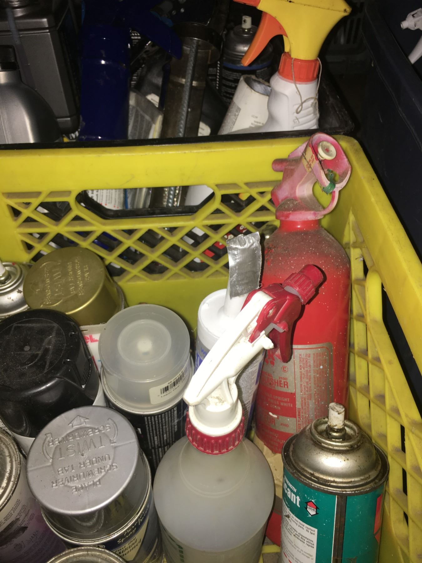 6 BINS OF ASSORTED SPRAY PAINT, CLAMPS, & SPRAYS
