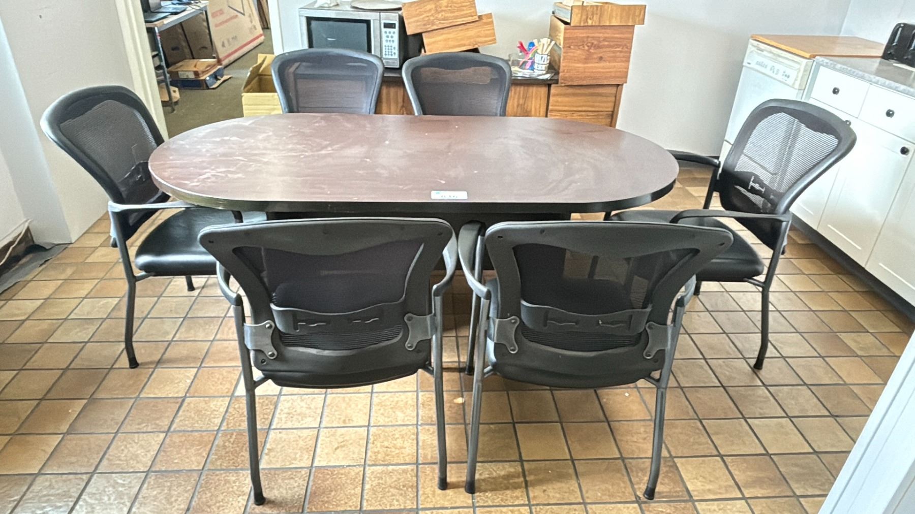 6' BOARDROOM TABLE WITH 6 BLACK OFFICE CHAIRS