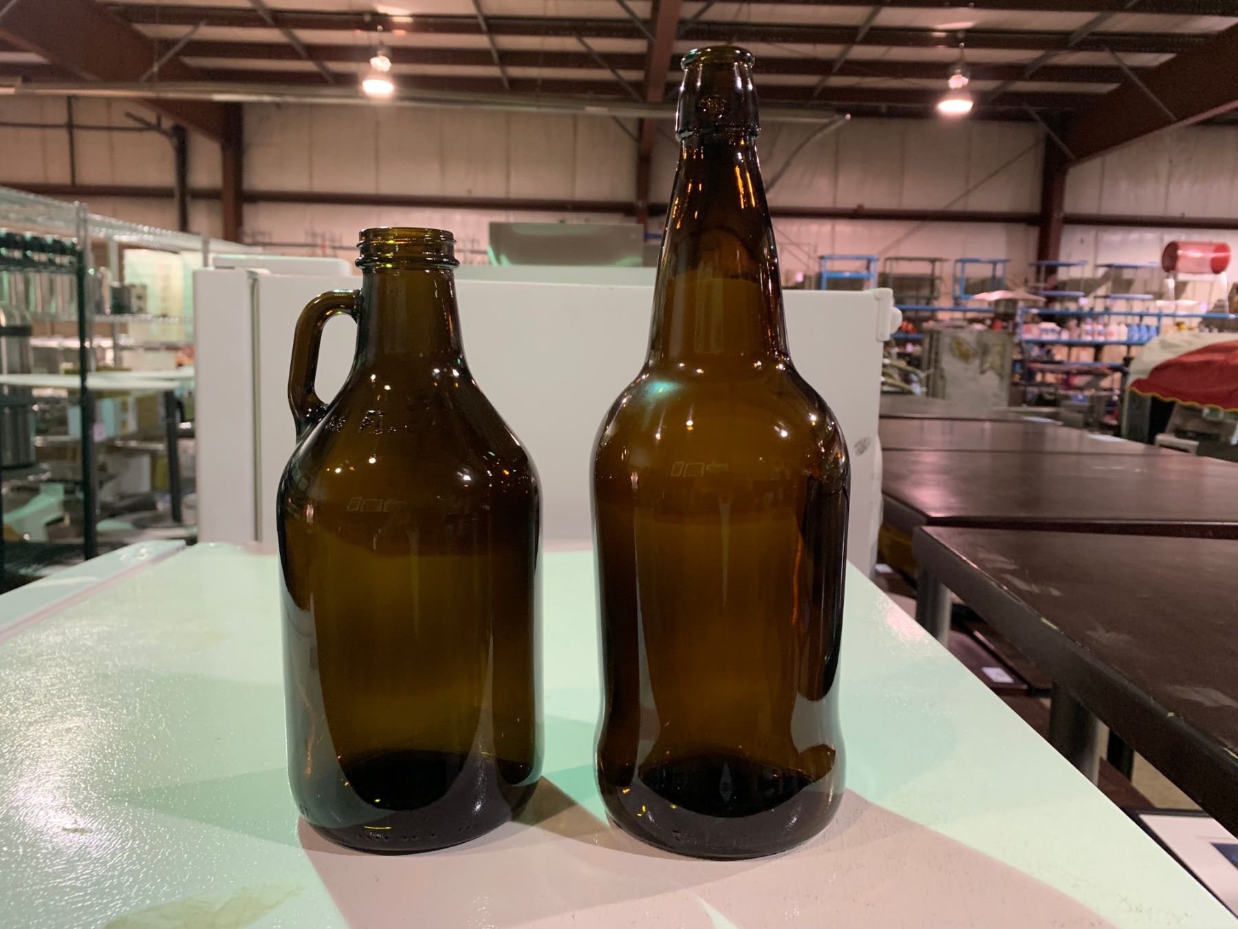 6 BOXES OF ASSORTED AMBER GLASS BOTTLES