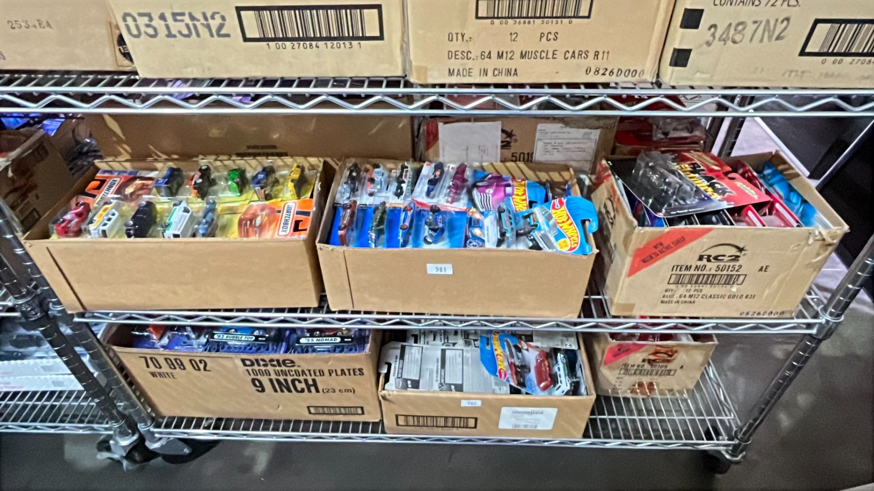 6 BOXES OF ASSORTED DIE CAST VEHICLES - MUSCLE MACHINES, HOT WHEELS & MATCHBOX