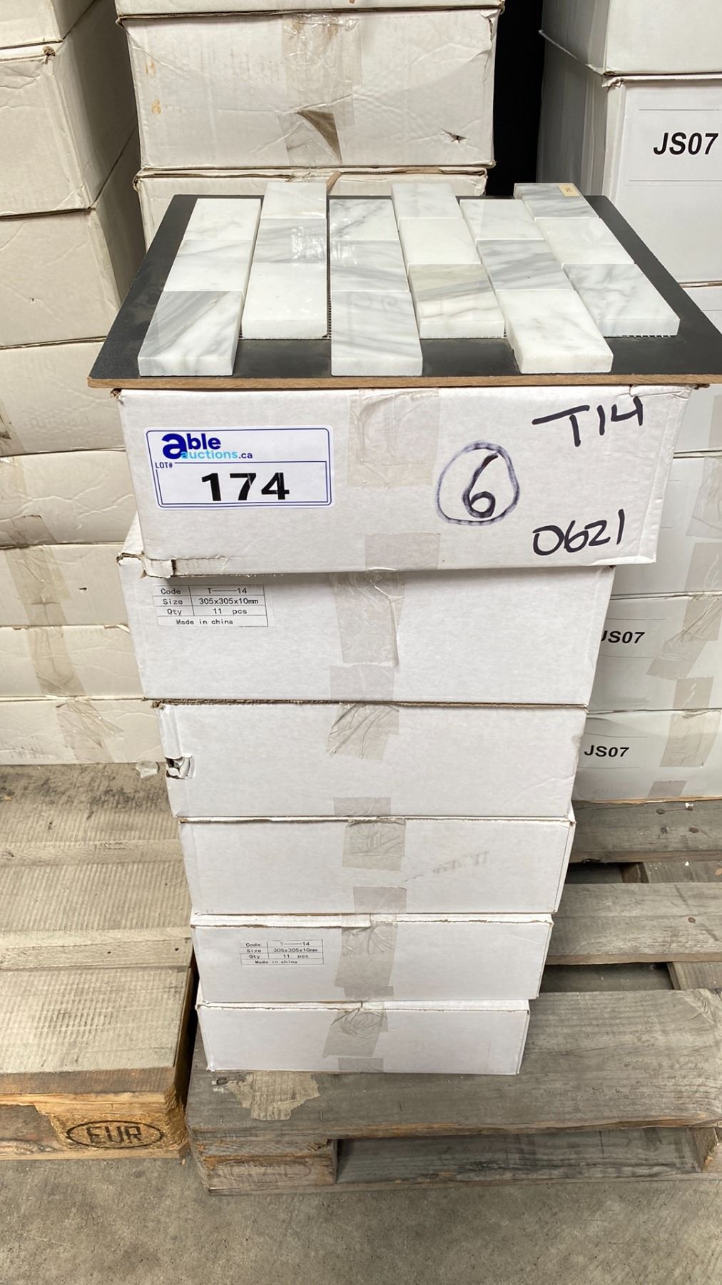 6 BOXES OF MARBLE MOSAIC TILE IN T14 11 X 1SQ.FT. SHEETS PER BOX APPROX 66SQ.FT. TOTAL