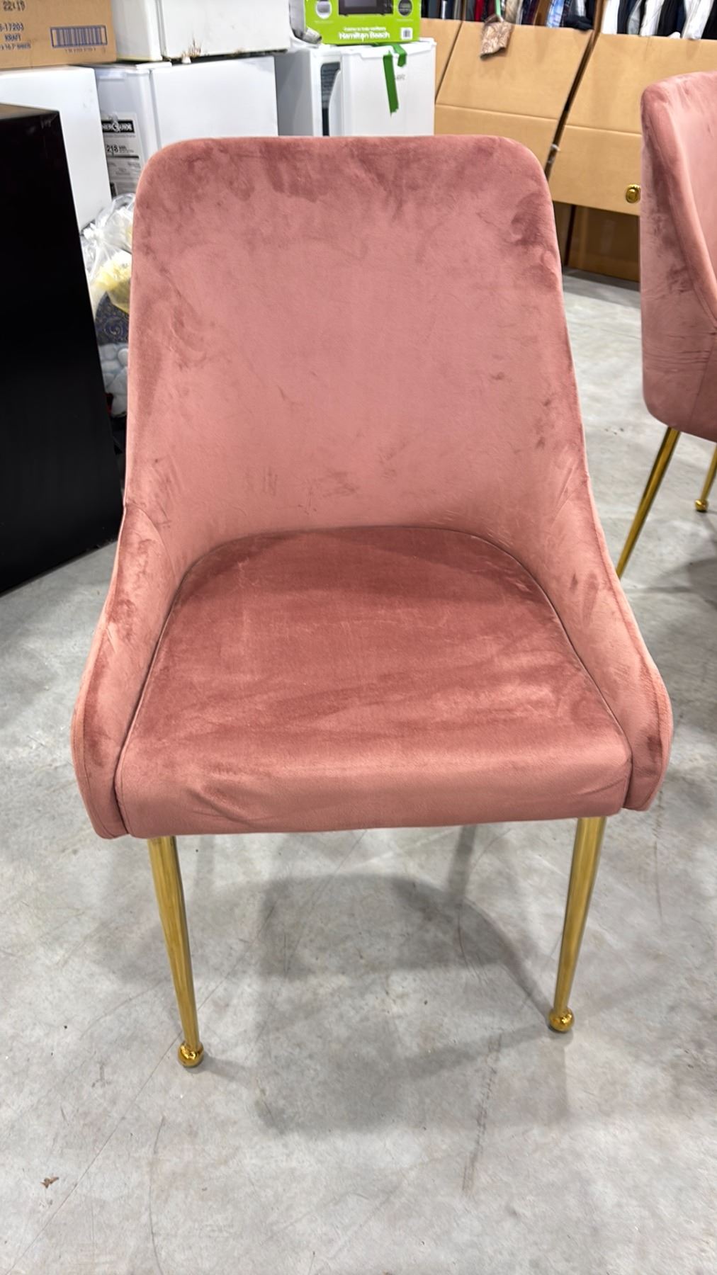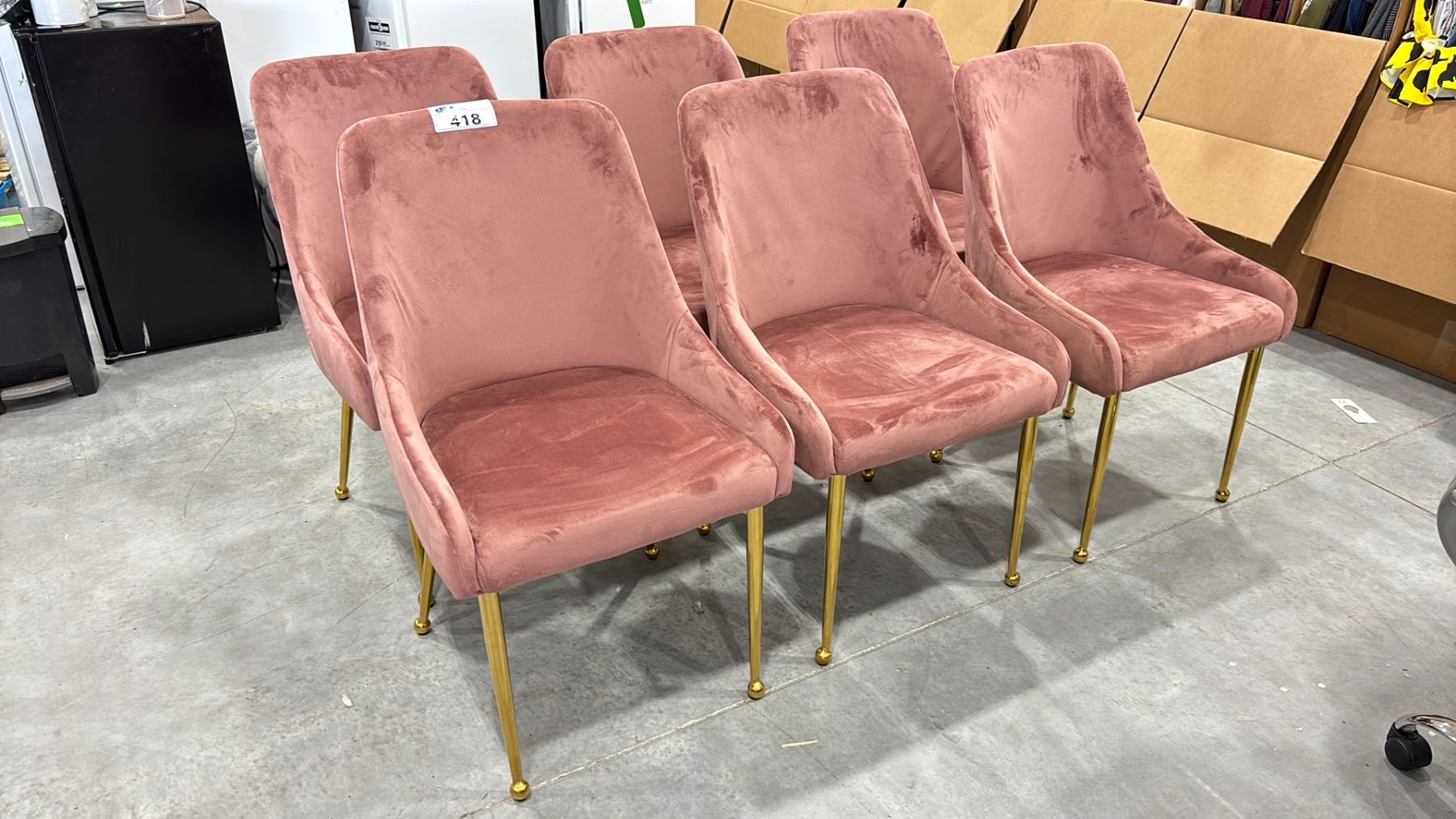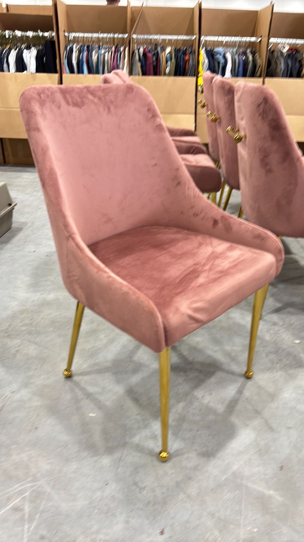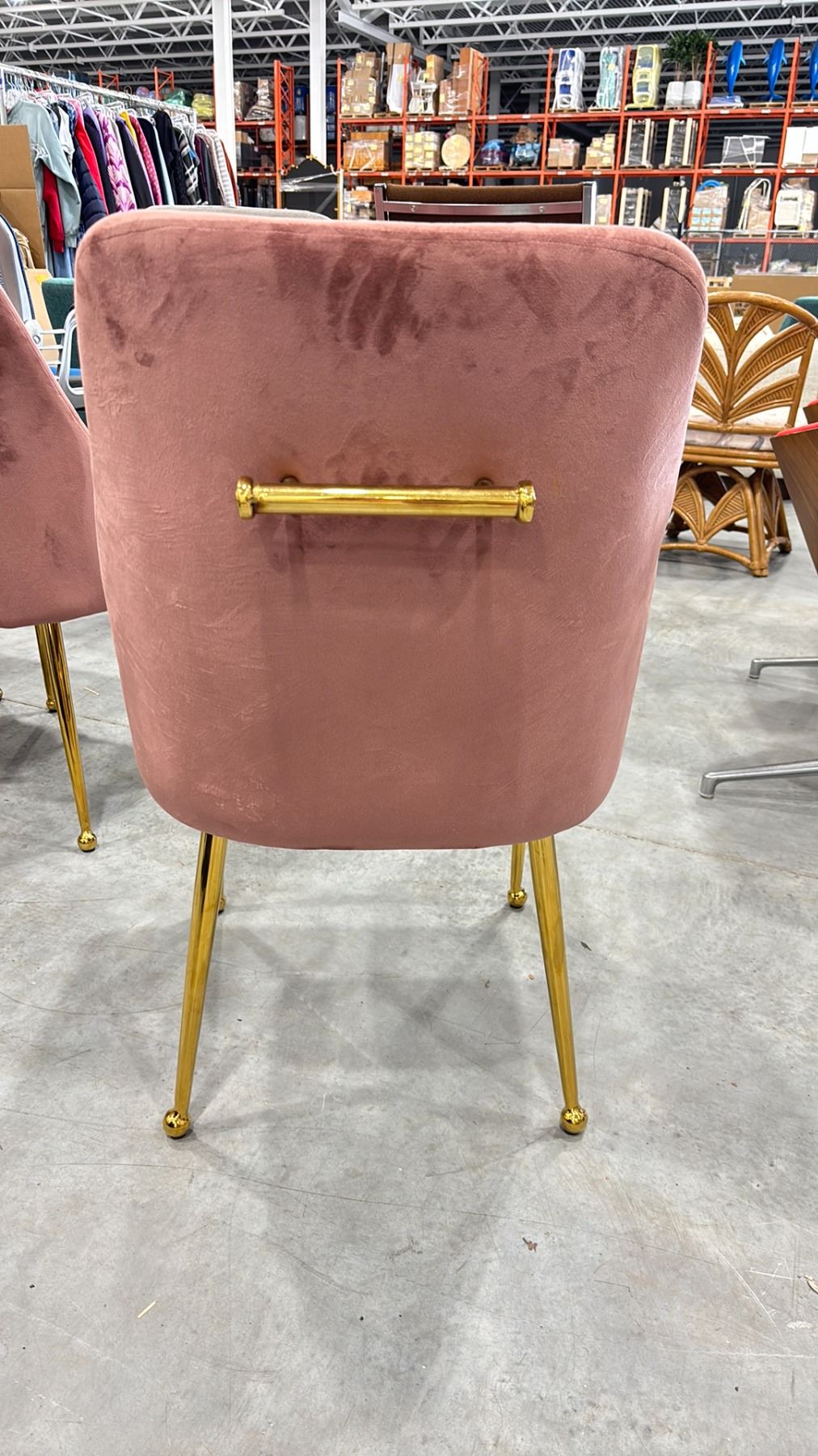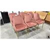 6 BRASS FINISH ROSE UPHOLSTERED DINING CHAIRS
