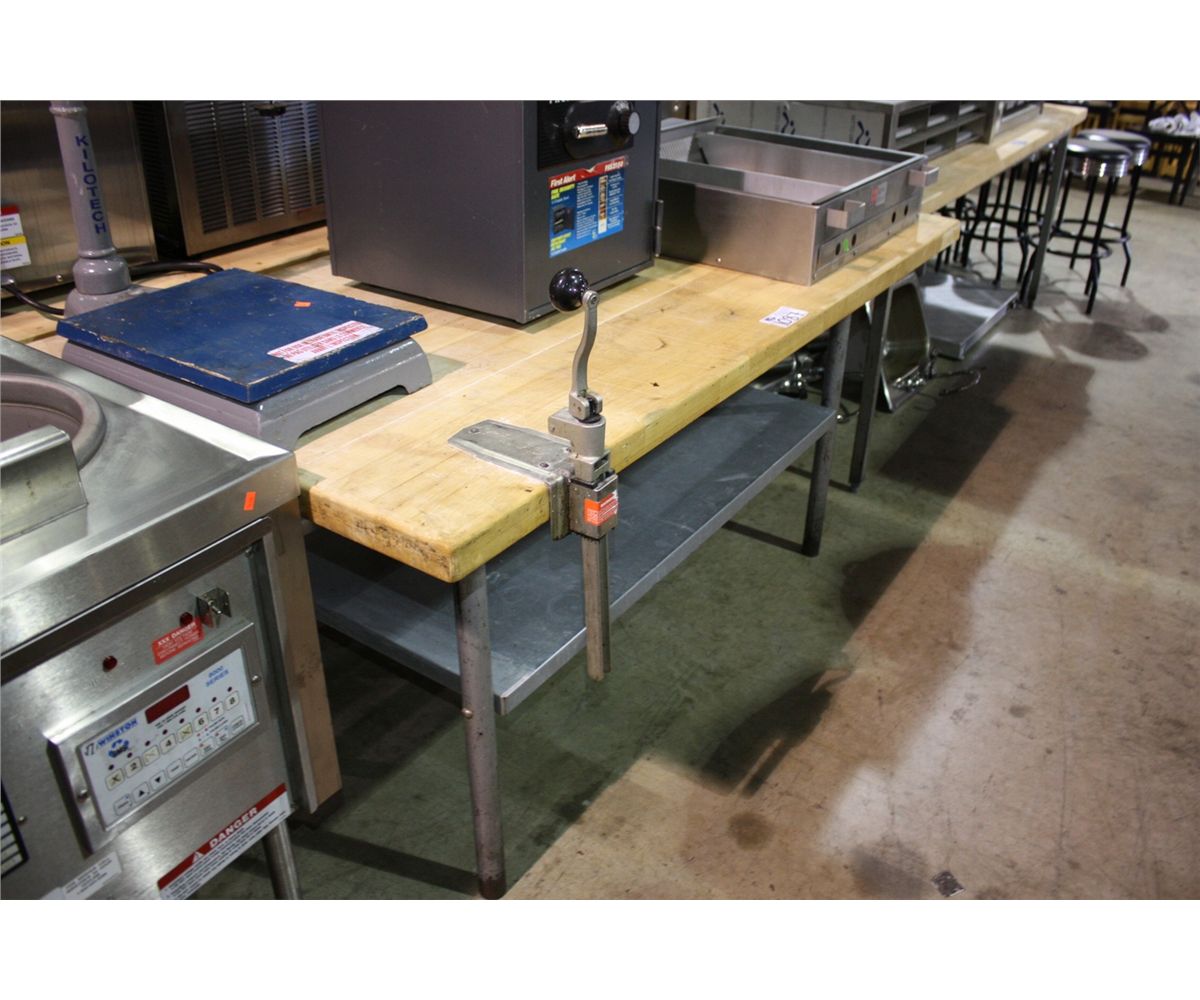 6'  BUTCHER BLOCK TOP TABLE WITH CAN OPENER
