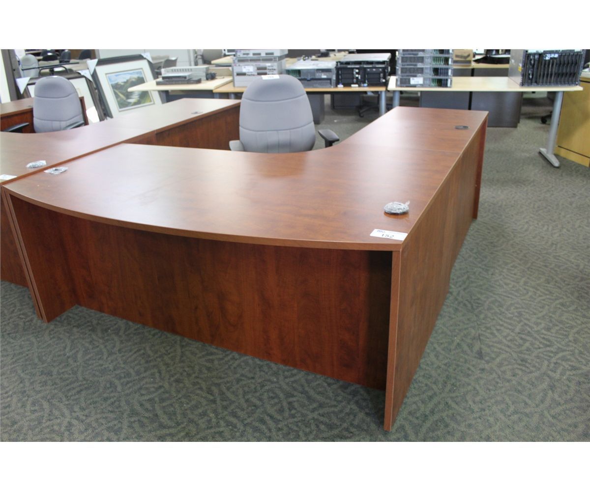 6' CHERRY BOW FRONT L-SHAPE EXECUTIVE DESK