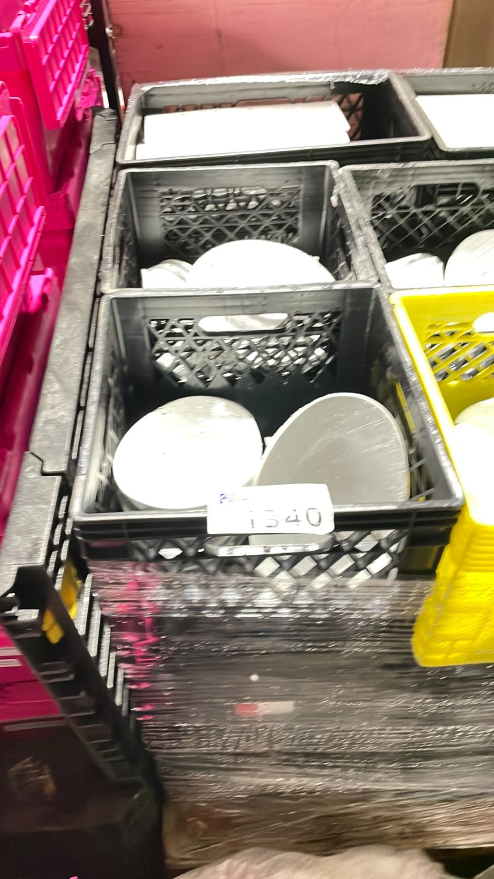 6 CRATES OF WHITE COMMERCIAL RESTAURANT OVAL SERVING BOWLS & WHITE 9" SOUP PLATES * CRATES INCLUDED*