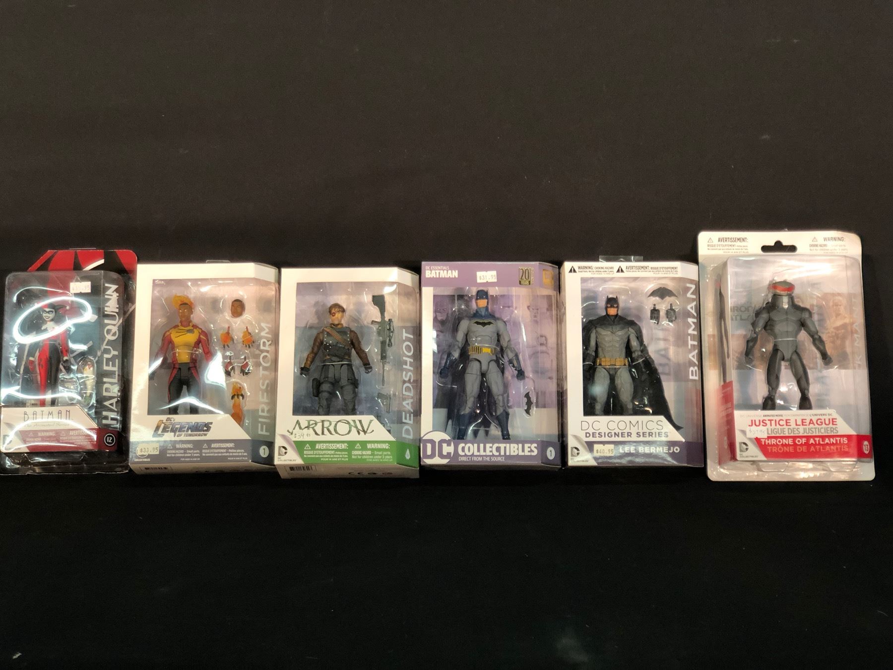 6 DC COMICS FIGURINES INC. ARROW, THRONE OF ATLANTIS, BATMAN AND LEAGUE OF TOMORROW