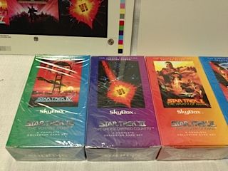 6 DECK STAR TREK TRADING CARD COLLECTION EACH FEATURING DIFFERENT FILMS OF STAR TREK 1 TO 6, LOT INCLUDES 2 UNCUT CARD SHEETS OF THE DECK COVERS AND A PACK OF STAR TREK GENERATIONS PREMIUM PACK