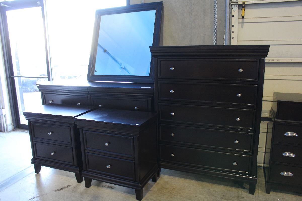 6 DRAWER DRESSER WITH MIRROR, 5 DRAWER HIGHBOY AND 2 NIGHT STANDS