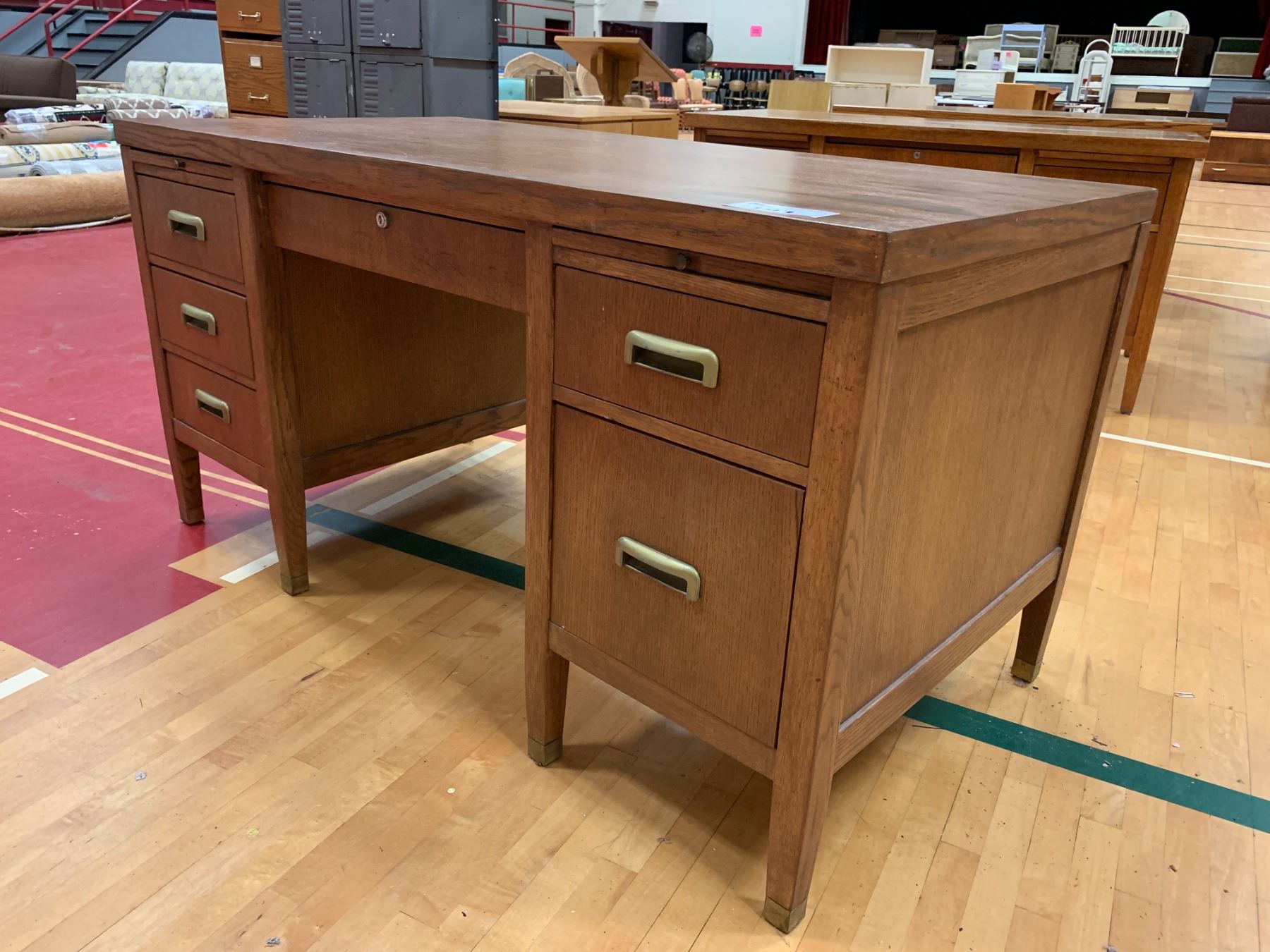 6 DRAWER WOOD LOCKING DESK (NO KEY) APPROX 31"X60"X30"