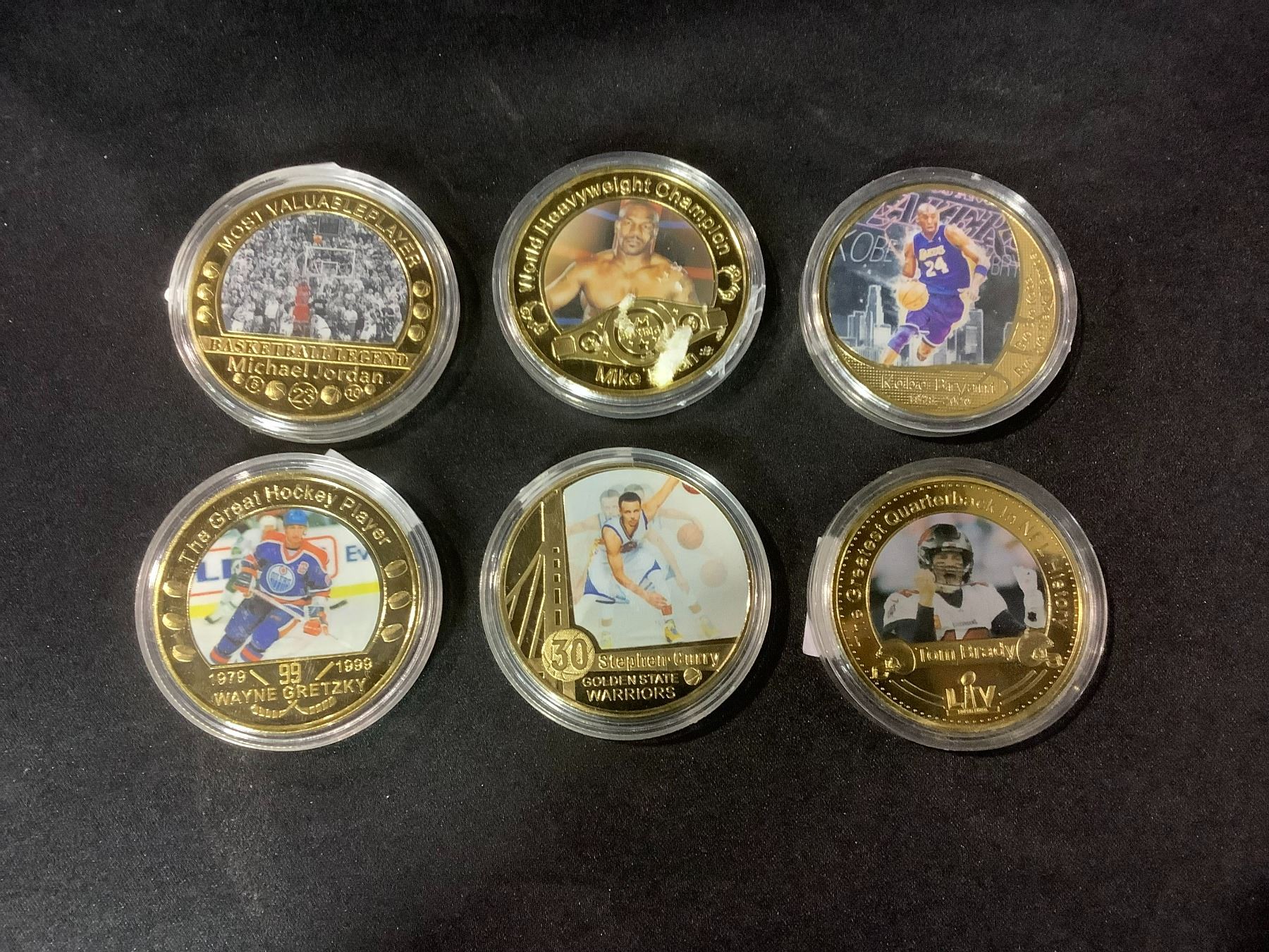 6 GOLD PLATED HOCKEY, BOXING , AND MORE COLLECTOR COINS
