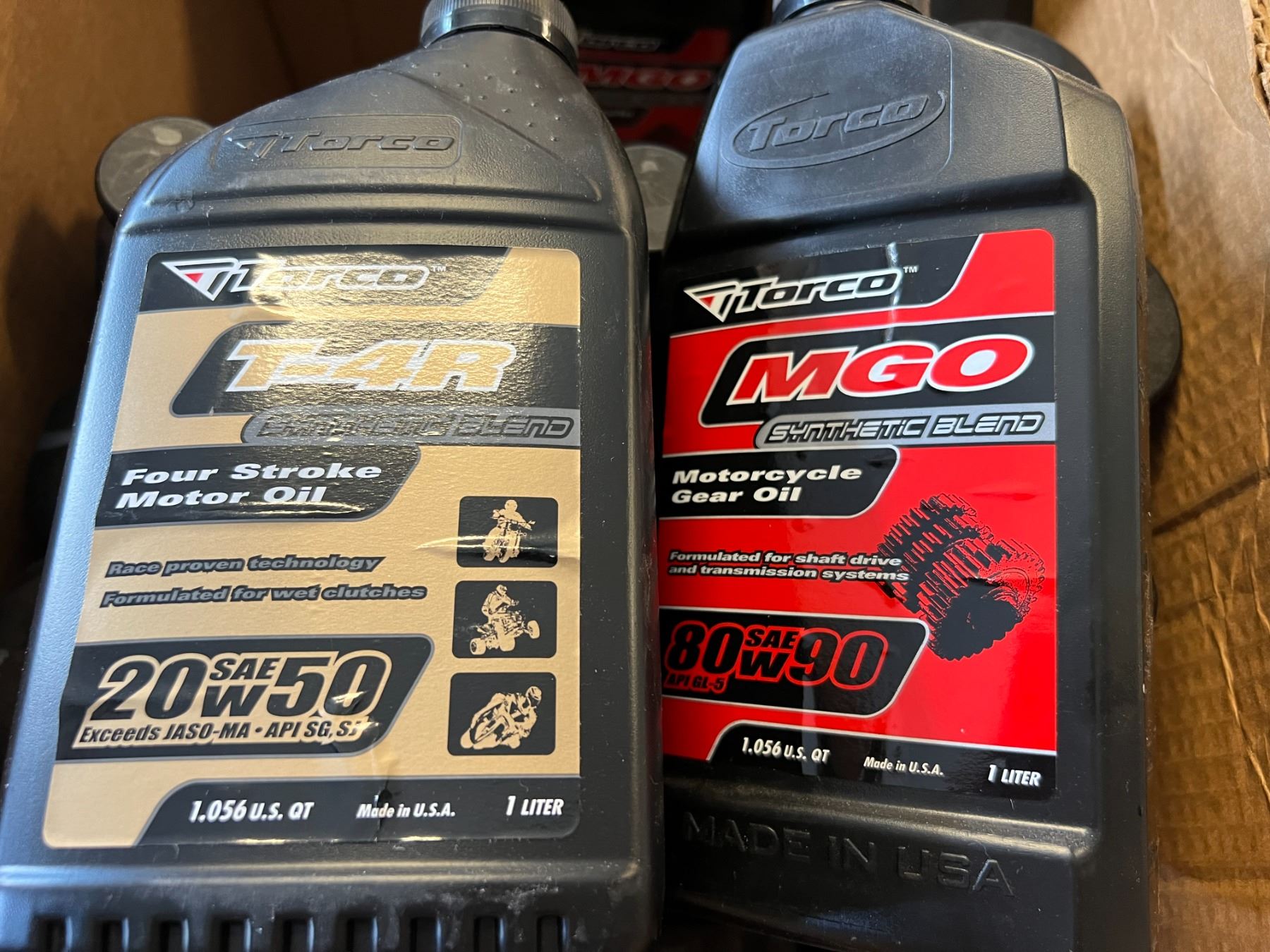 6 LITERS TORCO 20W50 SYNTHETIC BLEND OIL & 9 LITERS TORCO 80W90 GEAR OIL & 2 CANS SCHAEFFER SPRAY MULTI LUBE