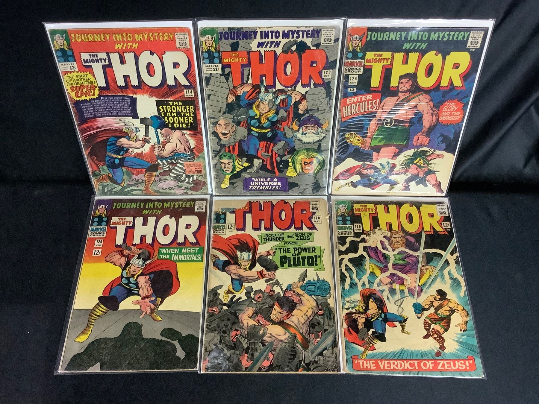 6 MARVEL COMIC BOOKS (JOURNEY INTO MYSTERY & THOR) WITH 2 FIRST APPEARANCES (#114 FENRIS WOLF & ABSORBING MAN): JOURNEY INTO MYSTERY 114, 123, 124, & 125 + THOR 128 & 129