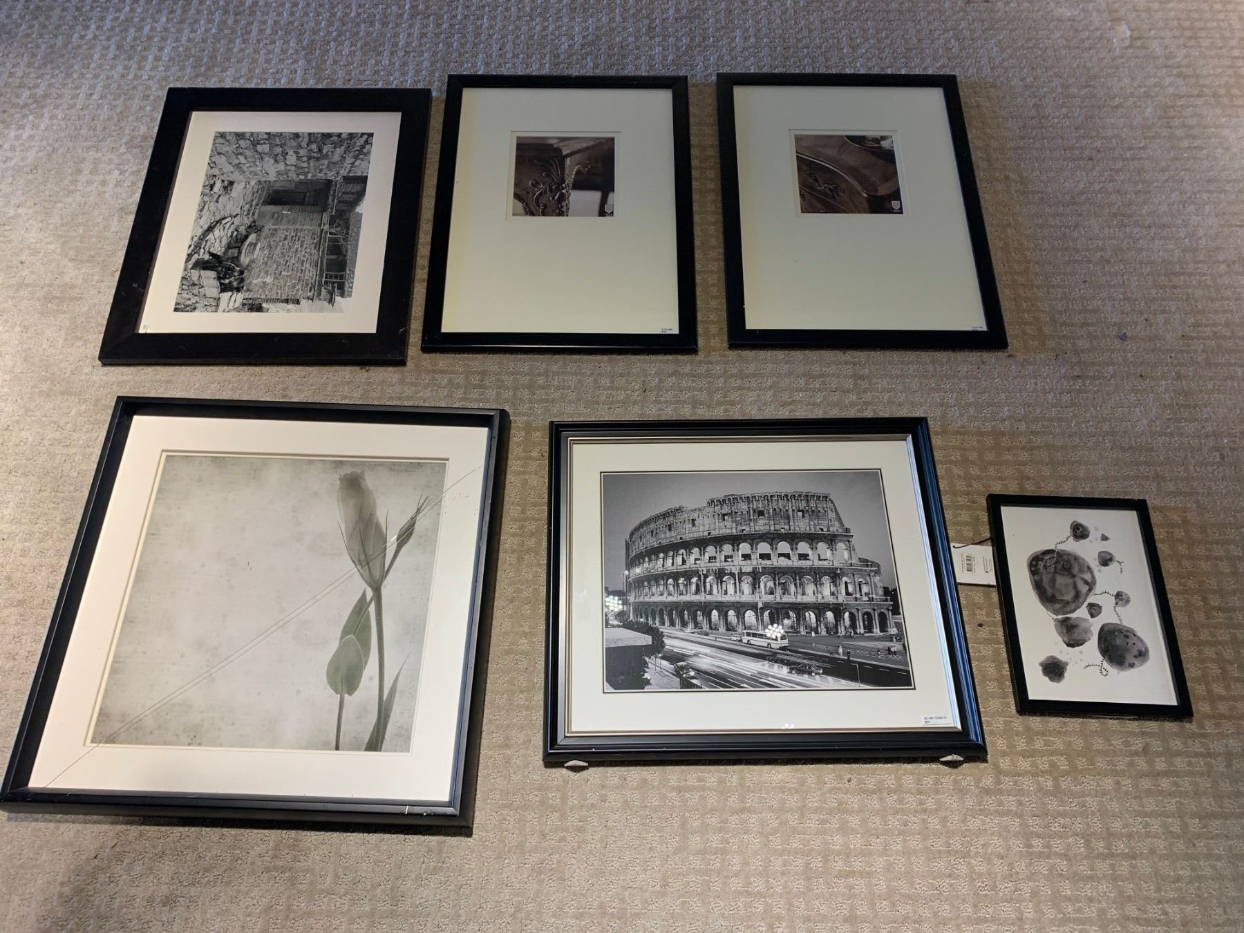 6 PC ASSORTED FRAMED WALL ARTWORK ( 1 GLASS HAS A CRACK )