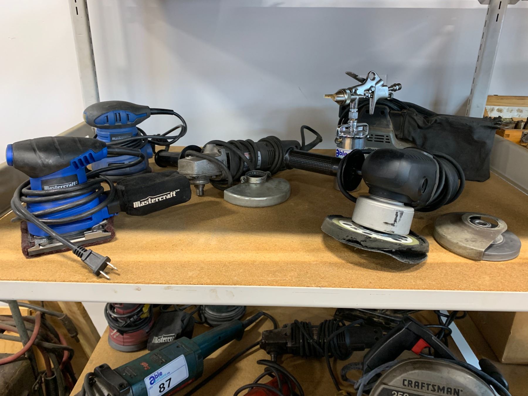 6 PCS. ASSORTED POWER TOOLS-3 SANDERS,2 GRINDERS AND PNEUMATIC PAINT GUN