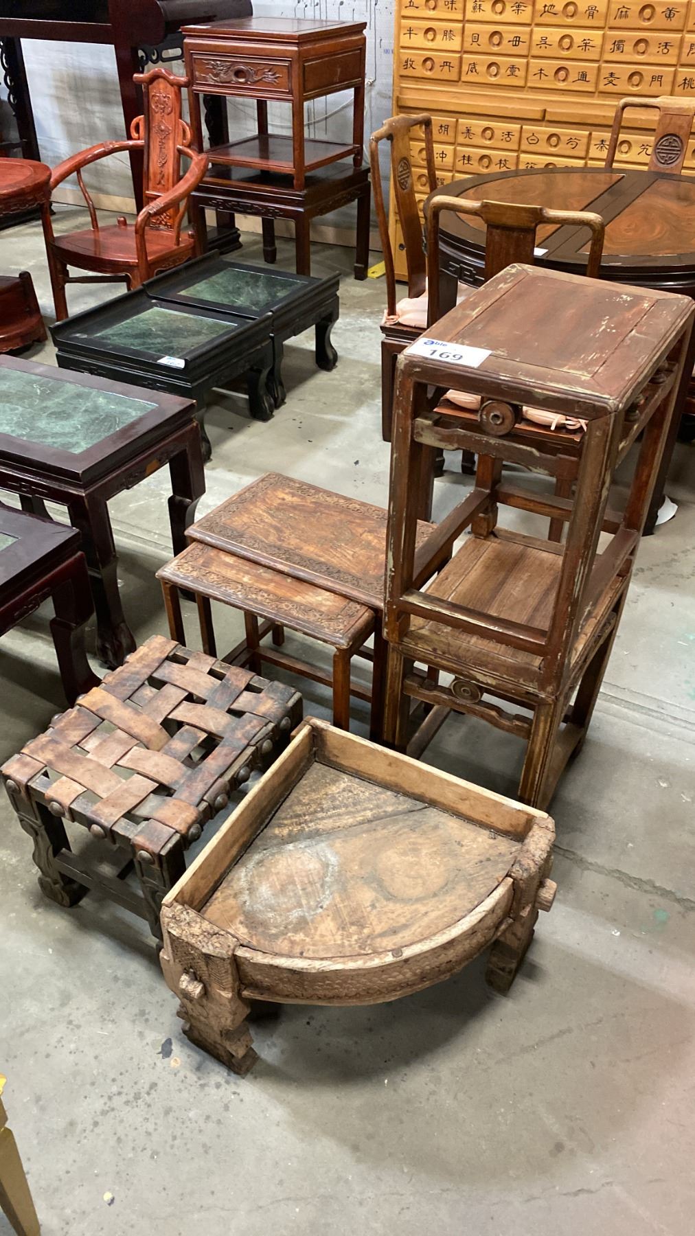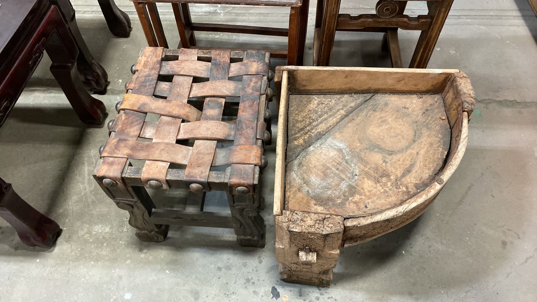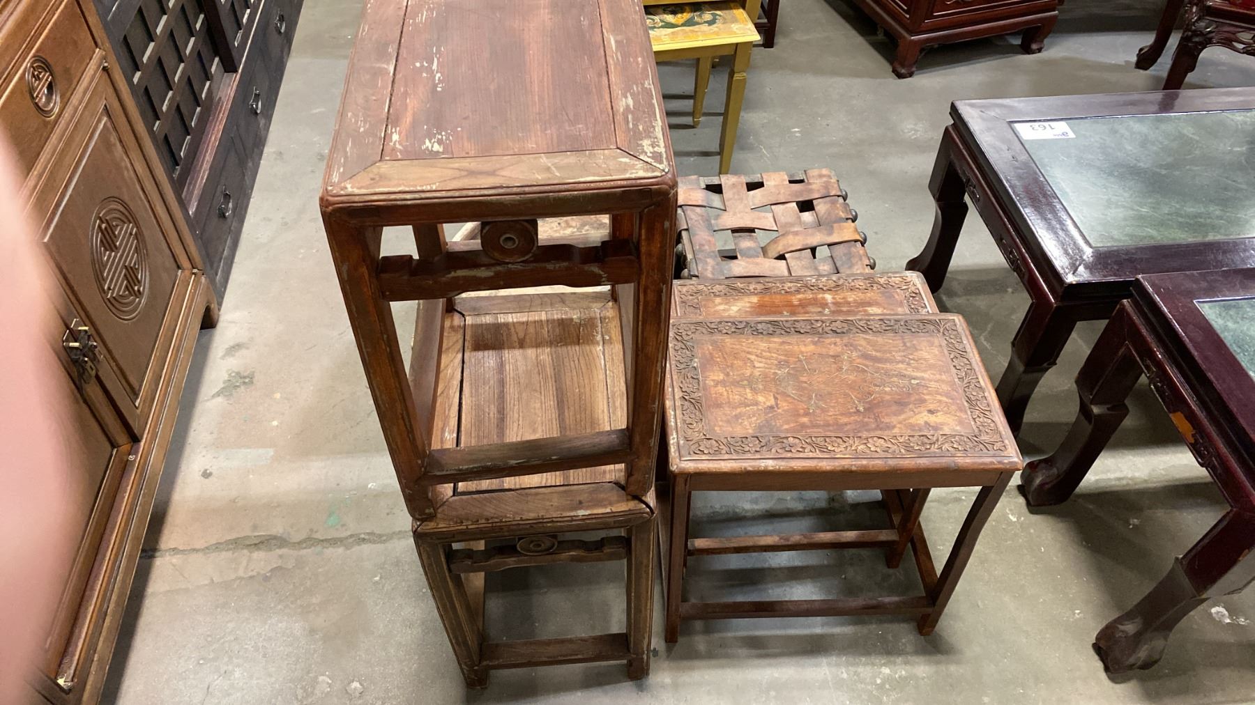 6 PCS OF ASSORTED PLANT STANDS, SMALL SIDE TABLES & LEATHER BANDED STOOL