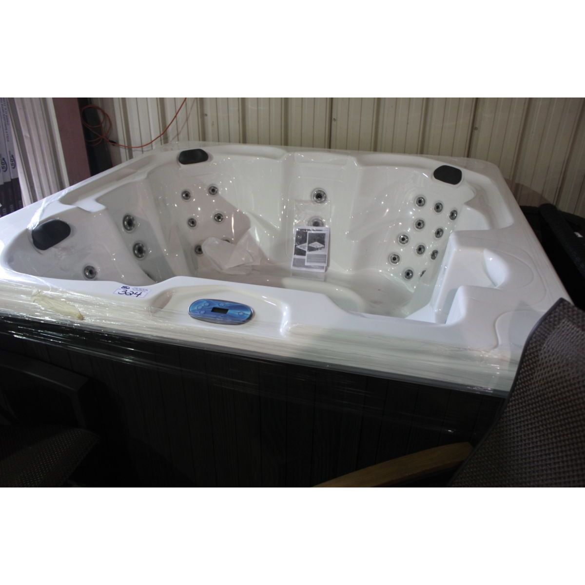 6 PERSON HOT TUB WITH LOUNGER - 45 STAINLESS STEEL JETS - LED SPA LIGHTS - 3 PILLOWS - 50 SQ. FT. POP UP FILTER - GATE VAVLES AND OZONATOR
