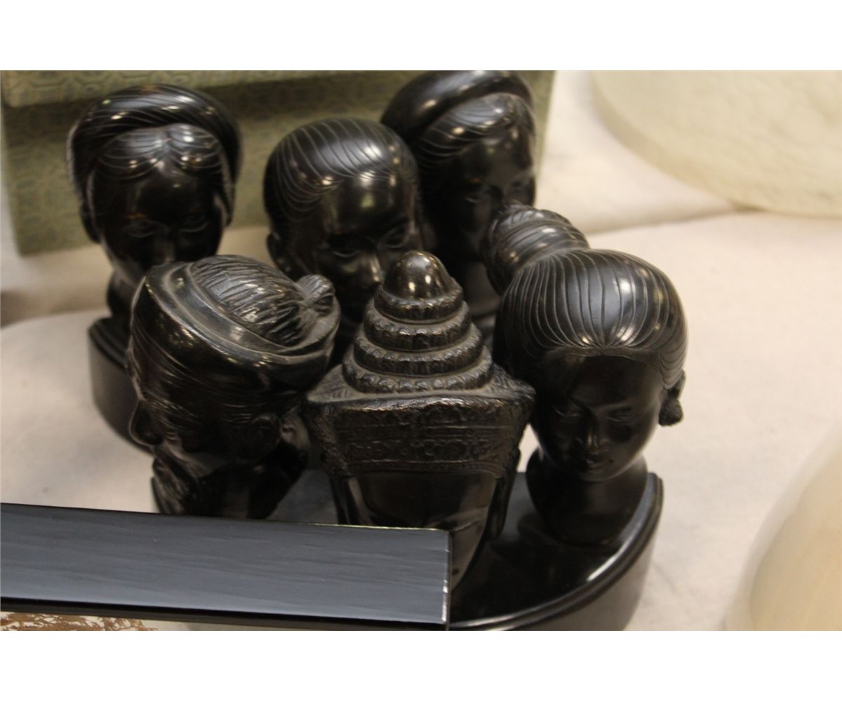 6 PIECES OF MISC. INCL. COVERED BOWL, CHRONOMETER, CARVED ASIAN SCENERY AND SCOTTY DOG