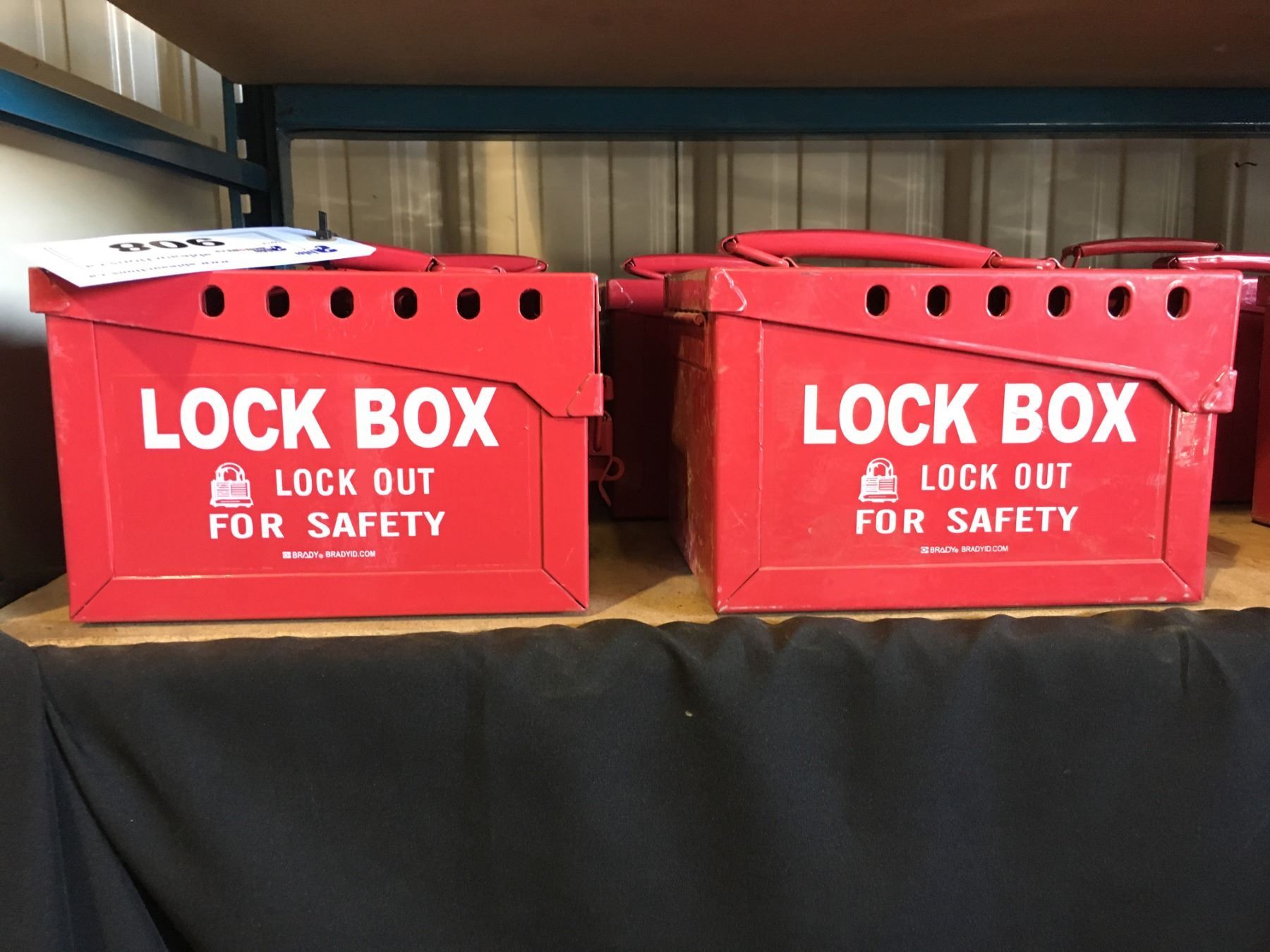 6 RED BRADY JOB SITE LOCK BOXES WITH SINGLE KEYED LOCKS