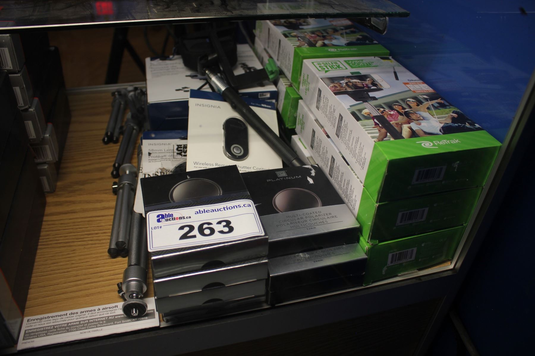 6 RETRAK SELFIE STICKS AND MORE ASSORTED CAMERA ACCESSORIES