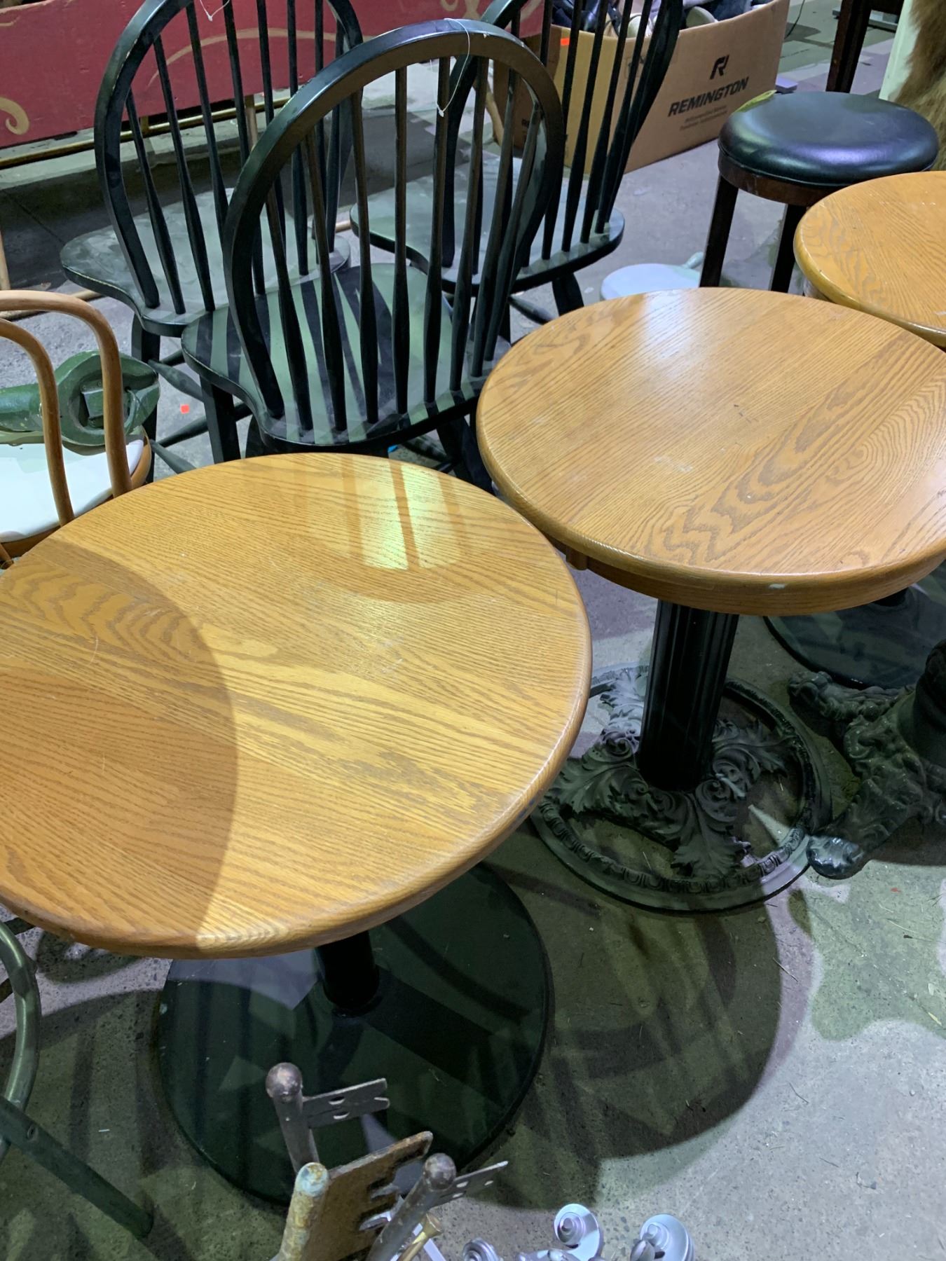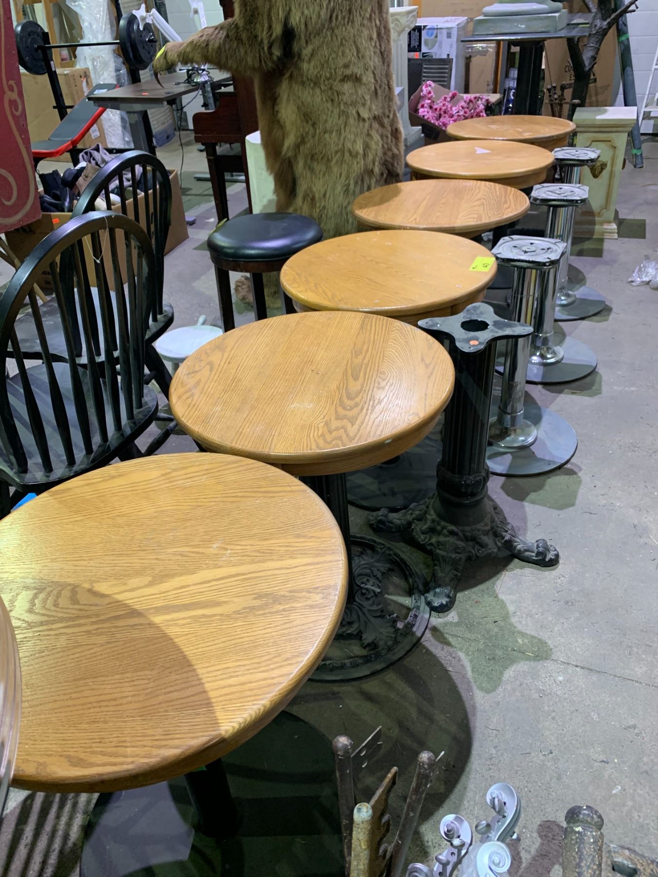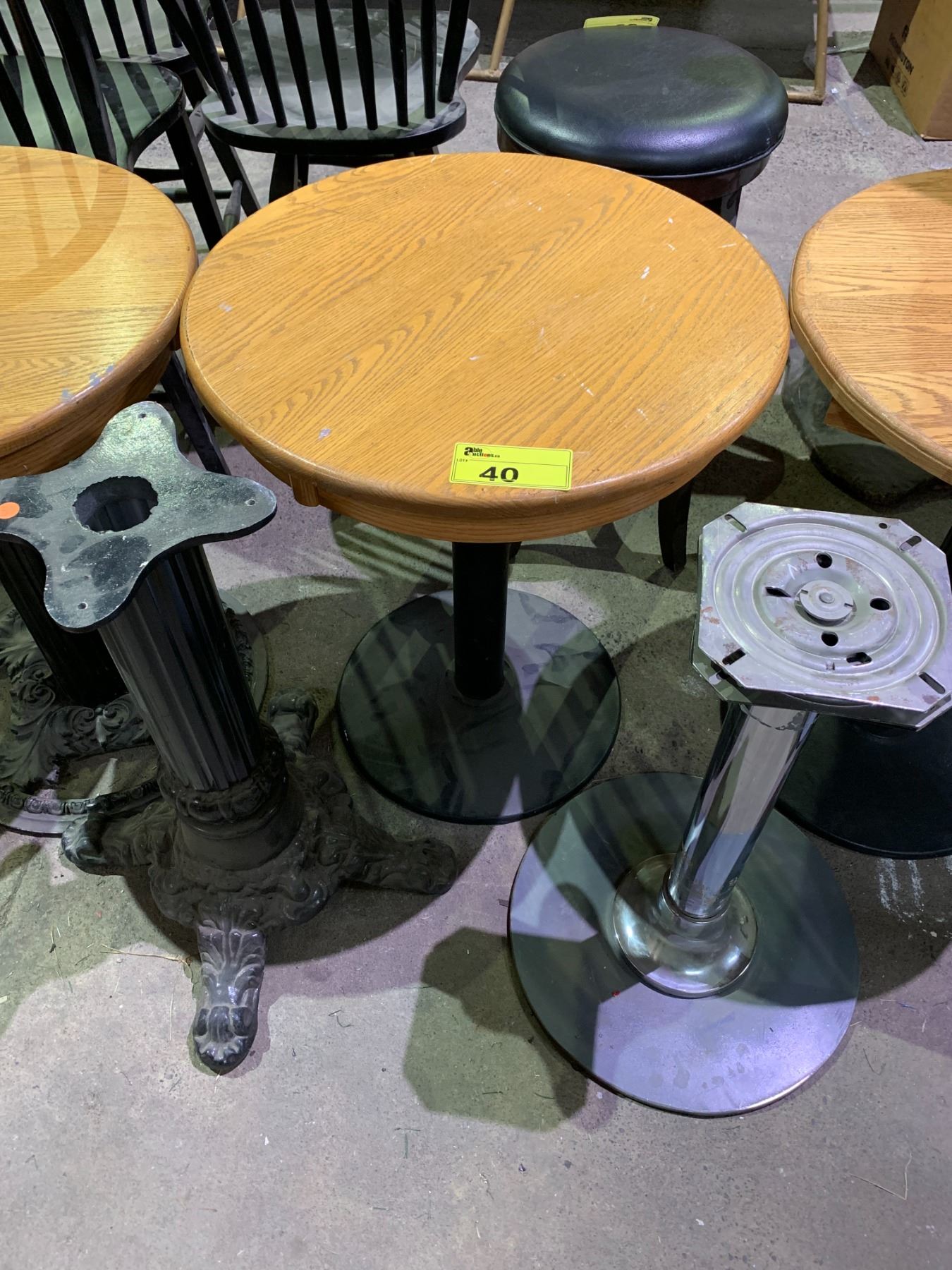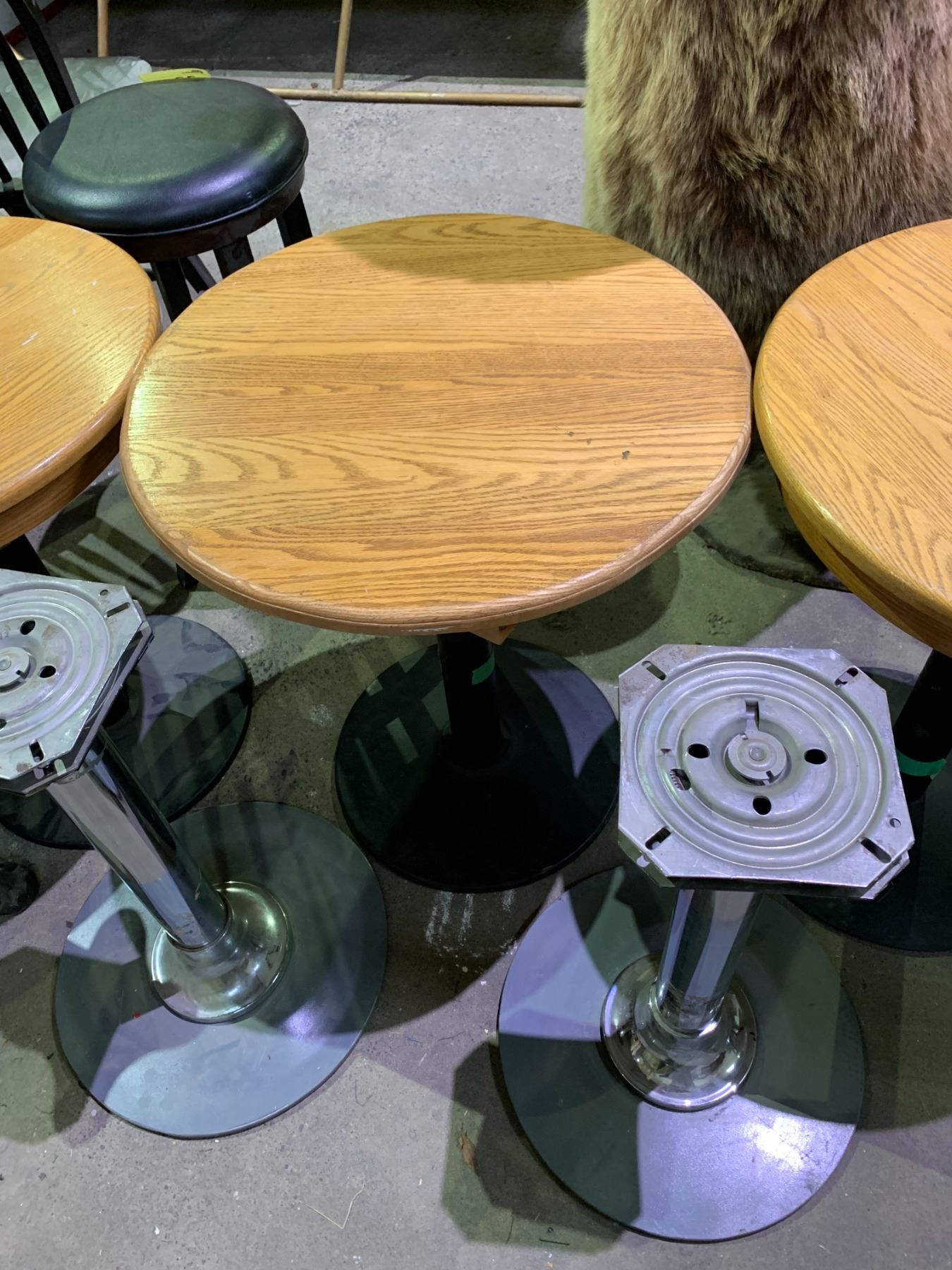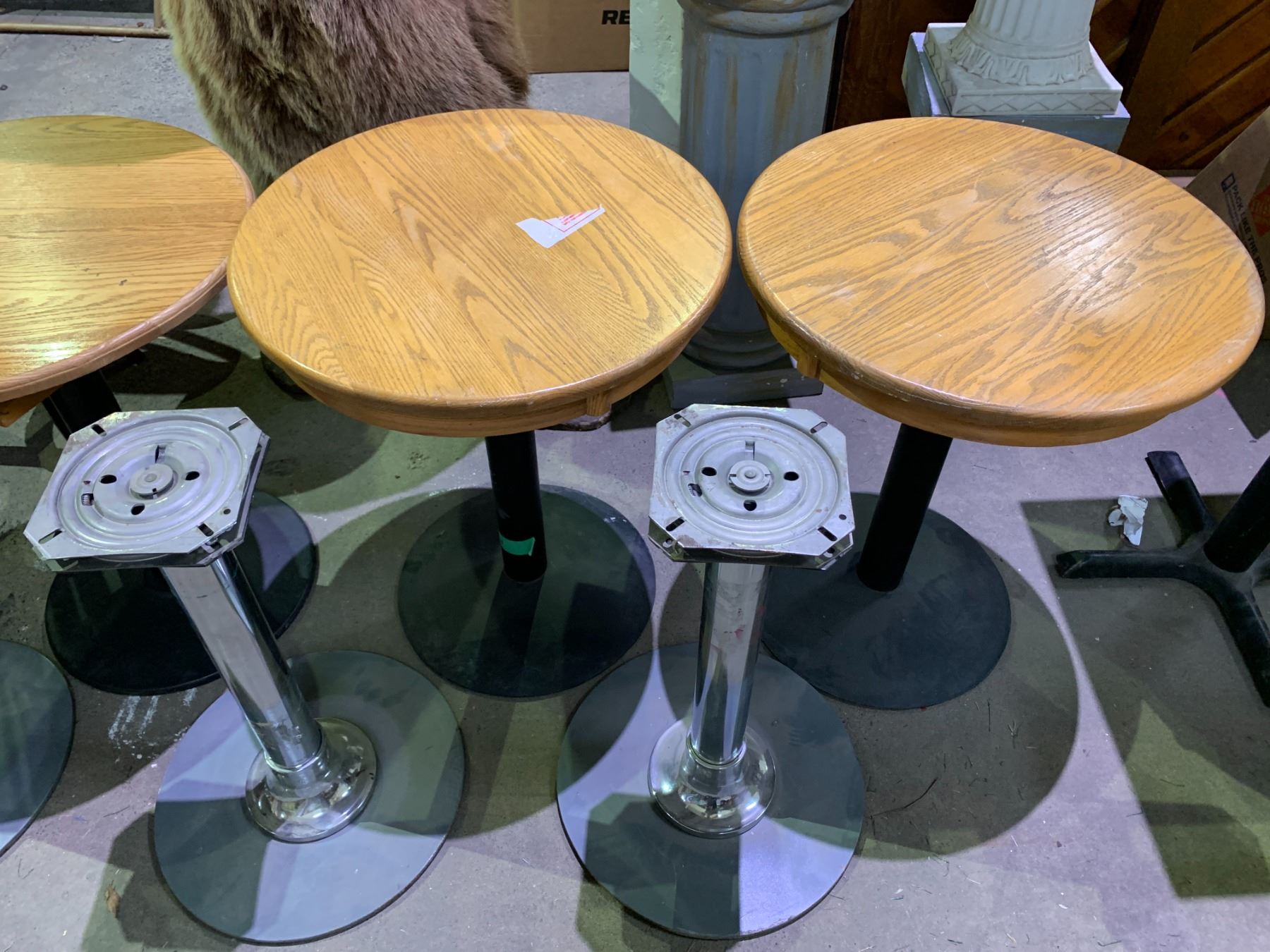 6 ROUND METAL & WOOD TABLES & 4 ASSORTED TABLE BASES